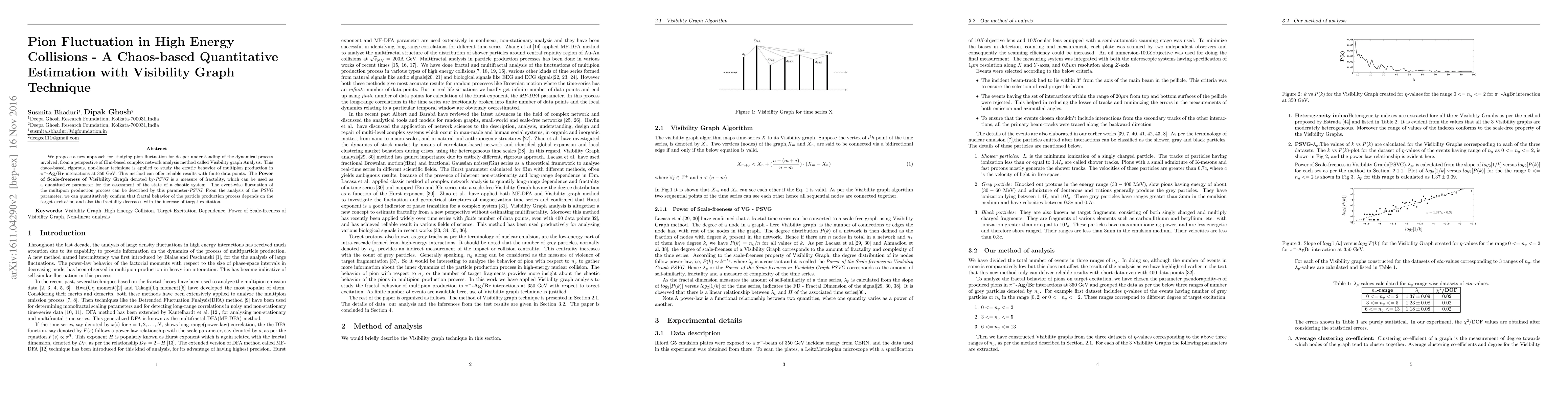 We propose a new approach for studying pion fluctuation for deeper understanding of the dynamical process involved, from a perspective of fBm-based complex network analysis method called Visibility graph Analysis. This chaos-based, rigorous, non-linear technique is applied to study the erratic behavior of multipion production in \pi^{-}-Ag/Br interactions at 350 GeV. This method can offer reliable results with finite data points. The Power of Scale-freeness of Visibility Graph denoted by-PSVG is a measure of fractality, which can be used as a quantitative parameter for the assessment of the state of a chaotic system. The event-wise fluctuation of the multipion production process can be described by this parameter-PSVG. From the analysis of the PSVG parameter, we can quantitatively confirm that fractal behavior of the particle production process depends on the target excitation and also the fractality decreases with the increase of target excitation.