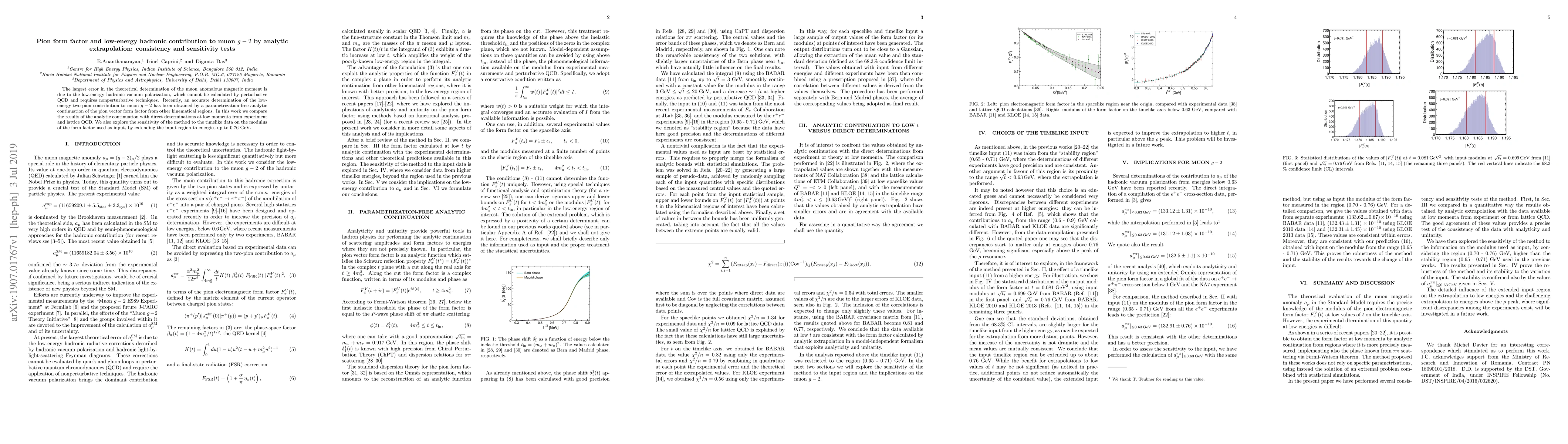 Researchers used an analytic continuation method to determine the low-energy hadronic contribution to the muon g-2 anomaly, showing consistency with experimental data and exploring sensitivity to input form factor data.