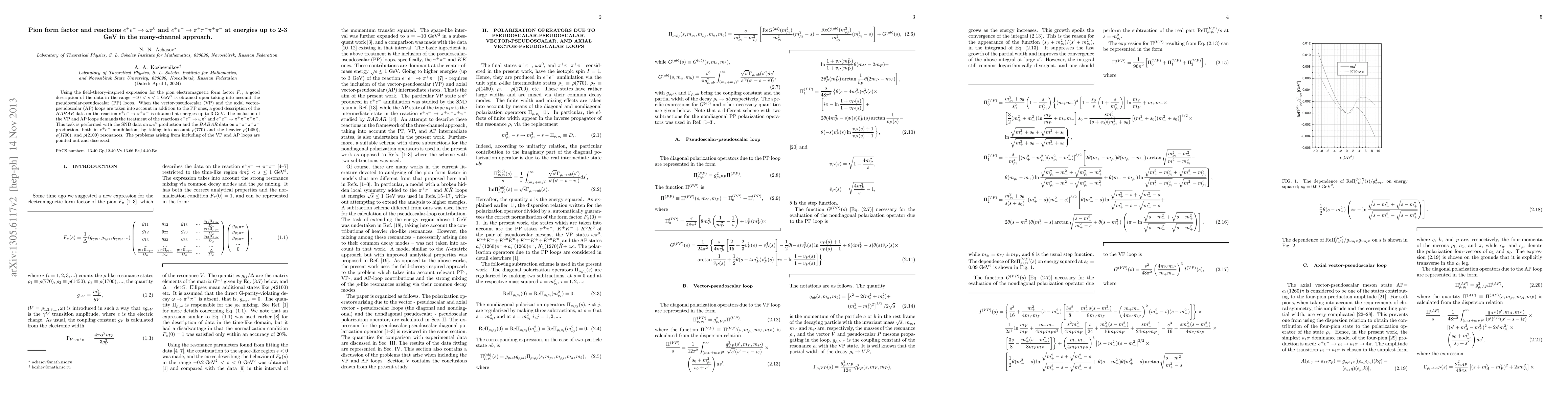 This paper describes the pion electromagnetic form factor using field-theory expressions and analyzes e^+e^- annihilation reactions up to 3 GeV, incorporating pseudoscalar-pseudoscalar, vector-pseudoscalar, and axial vector-pseudoscalar loops. The results match BABAR data for e^+e^--->pi^+ pi^- and SND data for e^+e^---> omega pi^0, considering resonances like \rho(770) and heavier \rho mesons.