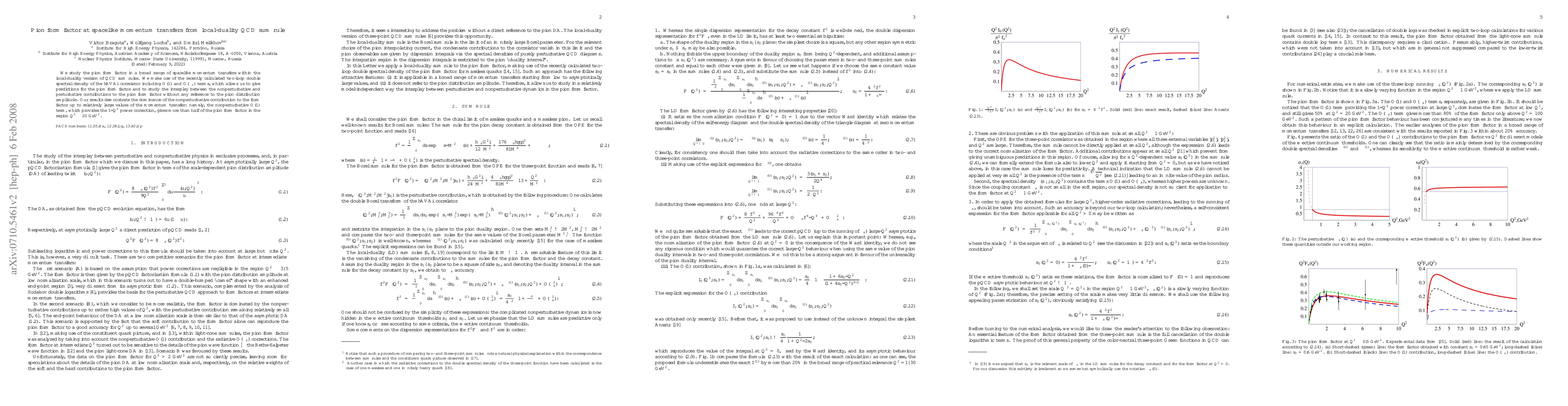 This paper investigates the pion form factor across spacelike momentum transfers using local-duality QCD sum rules, revealing the dominance of nonperturbative contributions up to $Q^2 \le 20$ GeV$^2$, with the O(1) term providing a significant $1/Q^4$ correction.