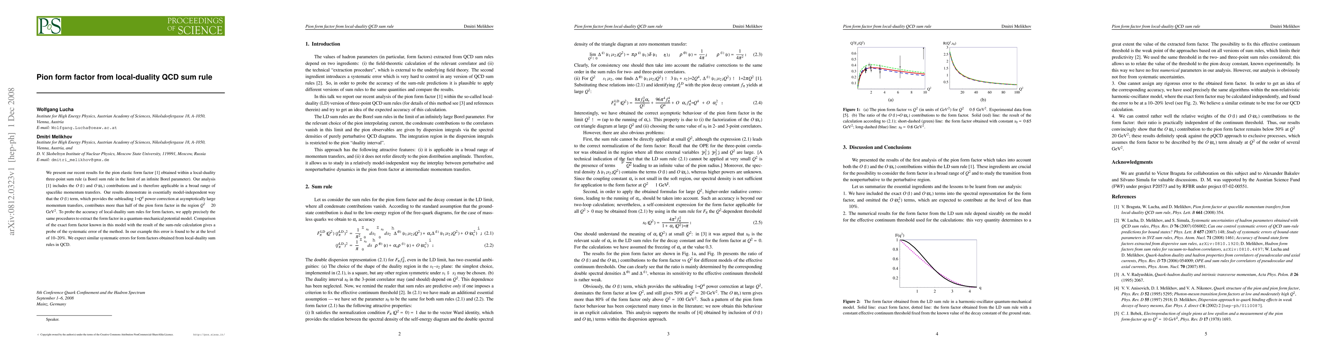 We present our recent results for the pion elastic form factor [1] obtained within a local-duality three-point sum rule (a Borel sum rule in the limit of an infinite Borel parameter). Our analysis includes the O(1) and O(\alpha_s) contributions and is therefore applicable in a broad range of spacelike momentum transfers. Our results demonstrate in essentially model-independent way that the O(1) term, which provides the subleading 1/Q^4 power correction at asymptotically large momentum transfers, contributes more than half of the pion form factor in the region Q^2 \le 20 GeV^2. To probe the accuracy of local-duality sum rules for form factors, we apply precisely the same procedures to extract the form factor in a quantum-mechanical potential model. Comparison of the exact form factor known in this model with the result of the sum-rule calculation gives a probe of the systematic error of the method. In our example this error is found to be at the level of 10-20%. We expect similar systematic errors for form factors obtained from local-duality sum rules in QCD.