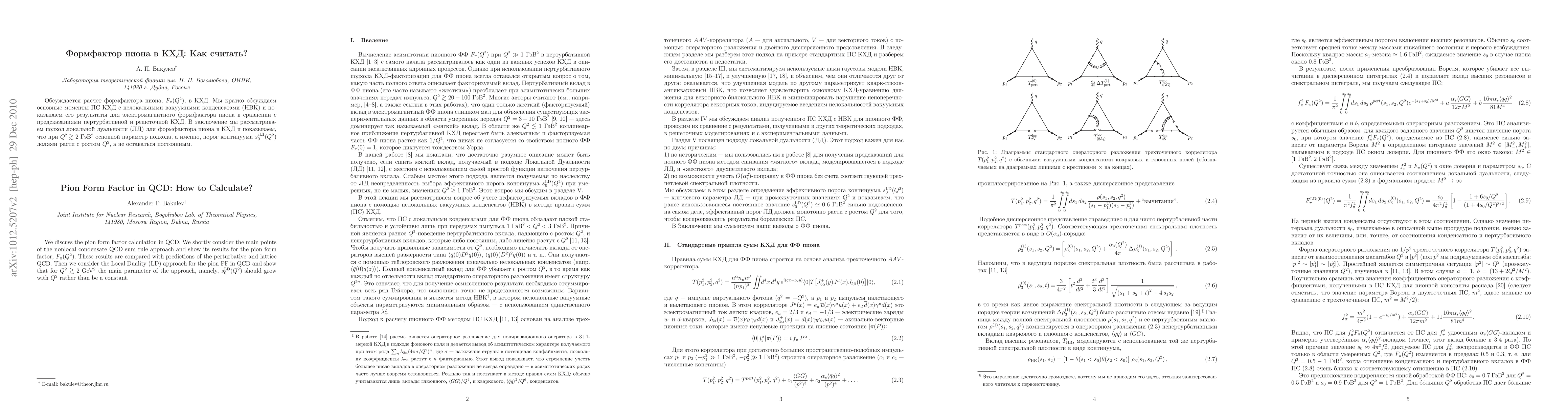We discuss the pion form factor calculation in QCD.We shortly consider the main points of the nonlocal condensate QCD sum rule approach and show its results for the pion form factor, $F_\pi(Q^2)$. These results are compared with predictions of the perturbative and lattice QCD. Then we consider the Local Duality (LD) approach for the pion FF in QCD and show that for $Q^2\gtrsim 2$ GeV$^2$ the main parameter of the approach, namely, $s_0^{\text{LD}}(Q^2)$ should grow with $Q^2$ rather than be a constant.
