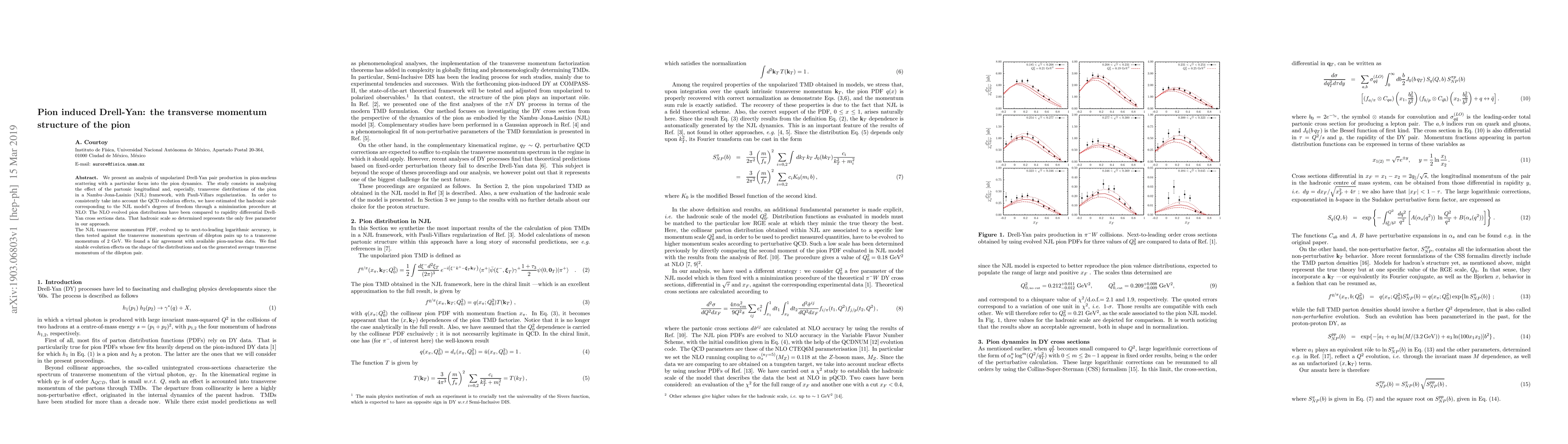 This paper analyzes unpolarized Drell-Yan pair production in pion-nucleus scattering, focusing on the pion's transverse momentum structure within a Nambu-Jona-Lasinio framework. The study finds a fair agreement between the NJL model's evolved transverse momentum PDF and pion-nucleus data, highlighting significant QCD evolution effects on the distributions.