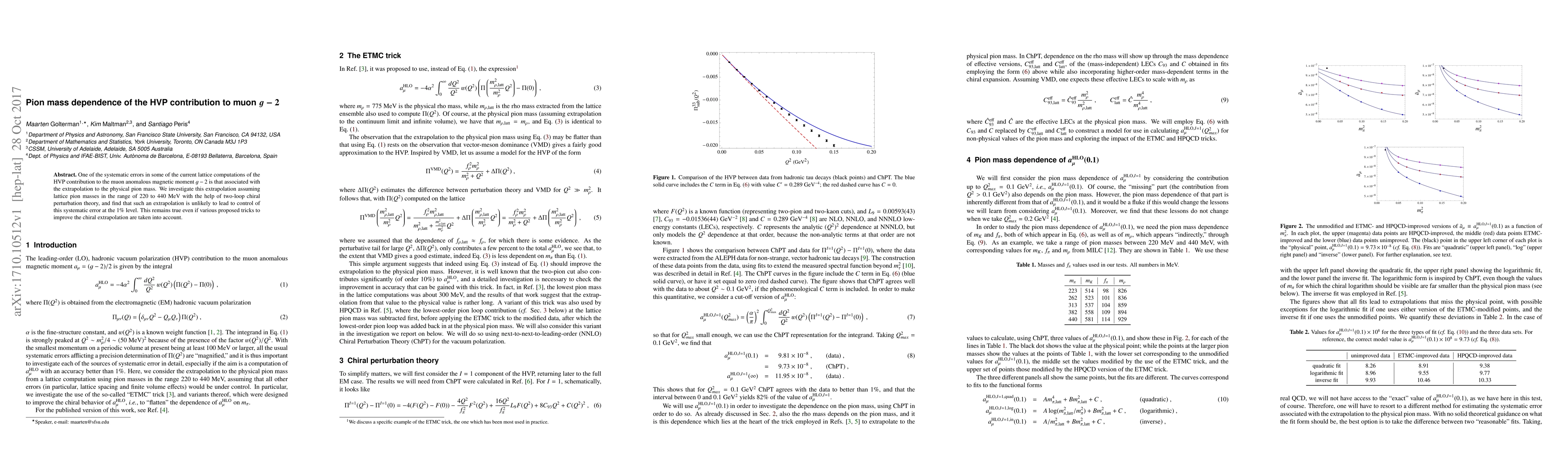 One of the systematic errors in some of the current lattice computations of the HVP contribution to the muon anomalous magnetic moment $g-2$ is that associated with the extrapolation to the physical pion mass. We investigate this extrapolation assuming lattice pion masses in the range of 220 to 440 MeV with the help of two-loop chiral perturbation theory, and find that such an extrapolation is unlikely to lead to control of this systematic error at the 1% level. This remains true even if various proposed tricks to improve the chiral extrapolation are taken into account.