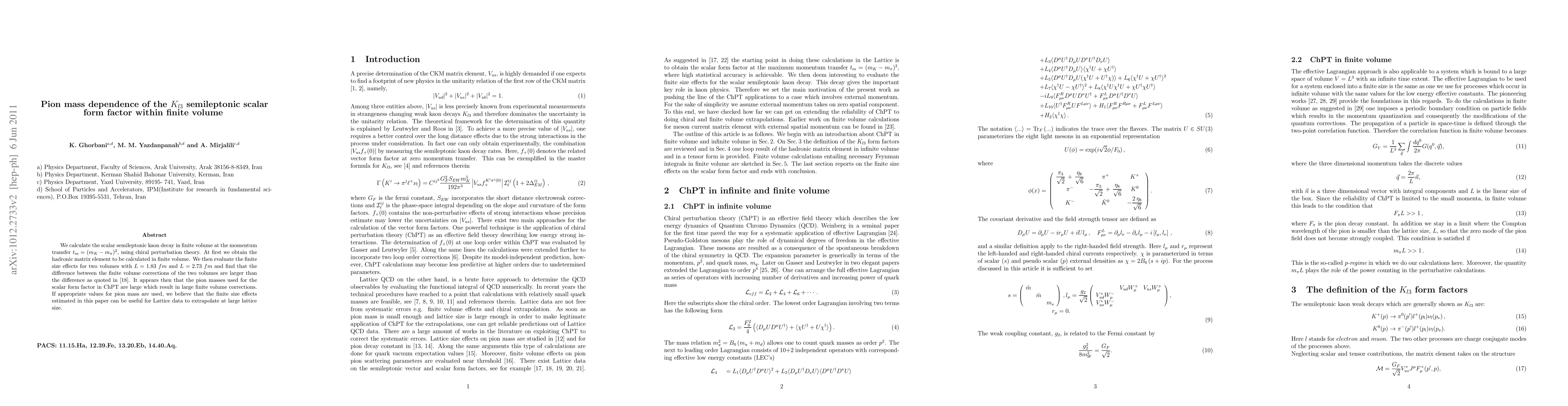 This paper calculates the scalar semileptonic kaon decay in finite volume using chiral perturbation theory, finding significant finite size effects that depend on pion mass. The study suggests that using appropriate pion mass values can improve the extrapolation of lattice data to larger sizes.