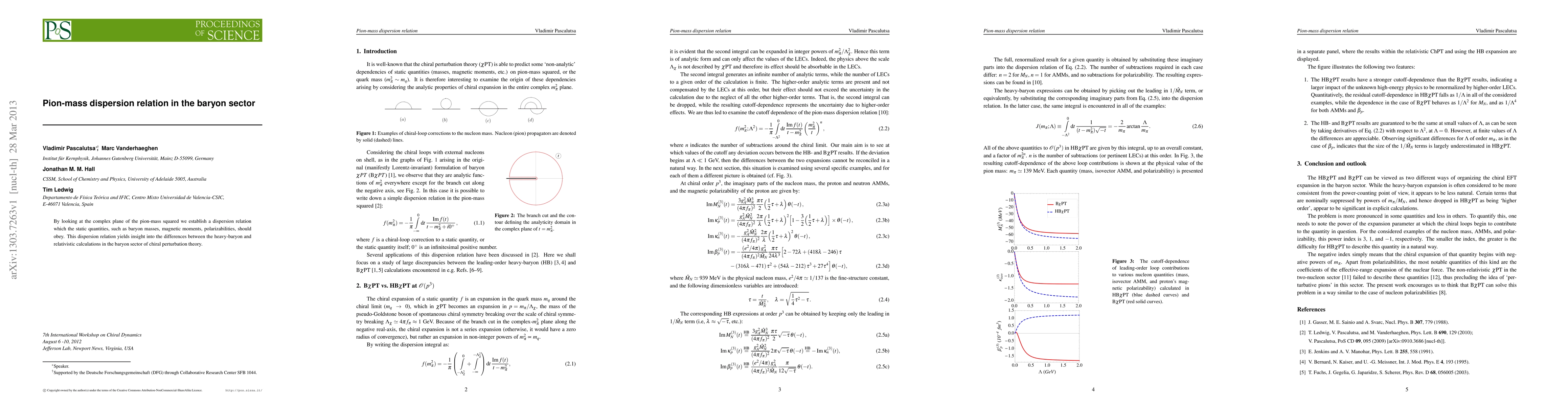 Researchers establish a dispersion relation for pion mass in the baryon sector, providing insight into differences between heavy-baryon and relativistic calculations in chiral perturbation theory.