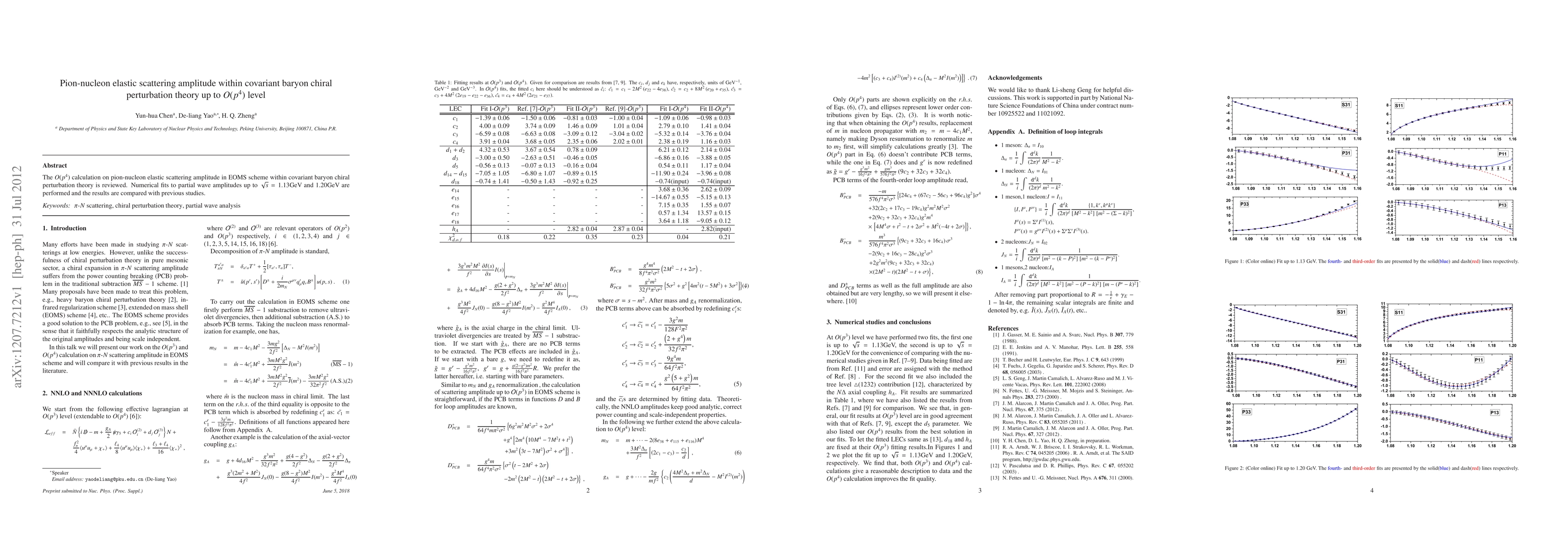 This paper reviews the $O(p^4)$ calculation of pion-nucleon elastic scattering amplitude using covariant baryon chiral perturbation theory in the EOMS scheme, and provides numerical fits to partial wave amplitudes up to $\sqrt{s}=1.13$ GeV and 1.20 GeV, comparing results with previous studies.