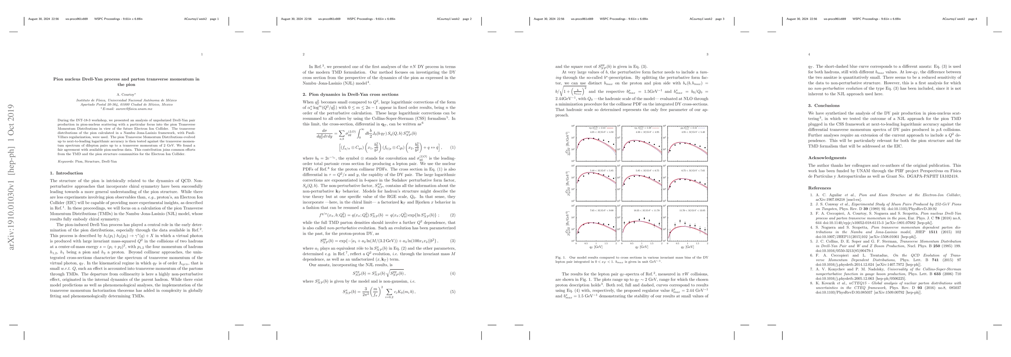 During the INT-18-3 workshop, we presented an analysis of unpolarized Drell-Yan pair production in pion-nucleus scattering with a particular focus into the pion Transverse Momentum Distributions in view of the future Electron Ion Collider. The transverse distributions of the pion calculated in a Nambu--Jona-Lasinio framework, with Pauli-Villars regularization, were used. The pion Transverse Momentum Distributions evolved up to next-to-leading logarithmic accuracy is then tested against the transverse momentum spectrum of dilepton pairs up to a transverse momentum of 2 GeV. We found a fair agreement with available pion-nucleus data. This contribution joins common efforts from the TMD and the pion structure communities for the Electron Ion Collider.