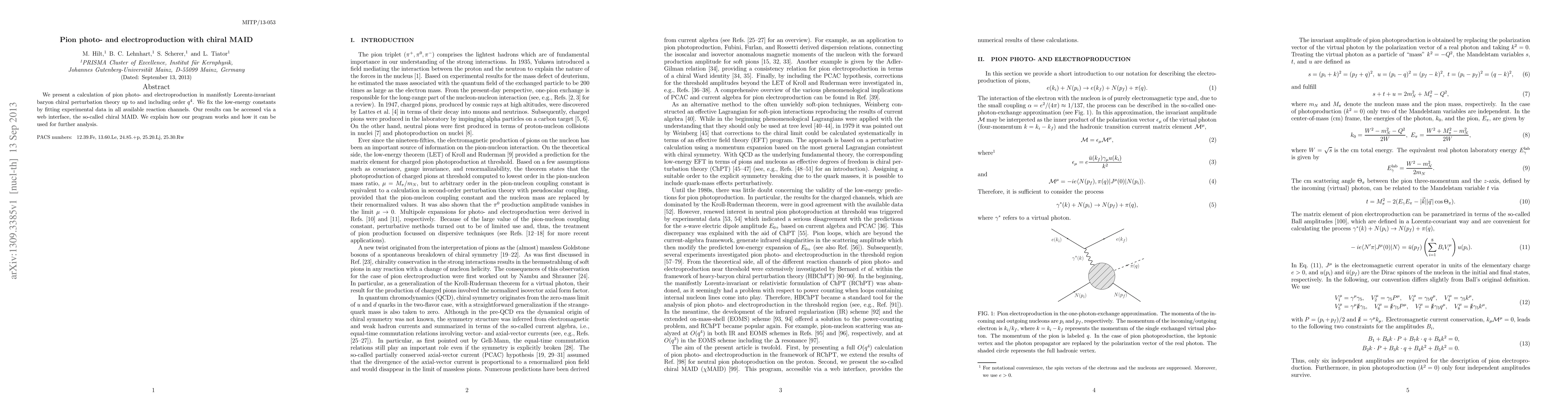 This paper calculates pion photo- and electroproduction using baryon chiral perturbation theory up to $q^4$ order, fitting low-energy constants to experimental data. The results are accessible via a web interface called chiral MAID, which allows for further analysis.