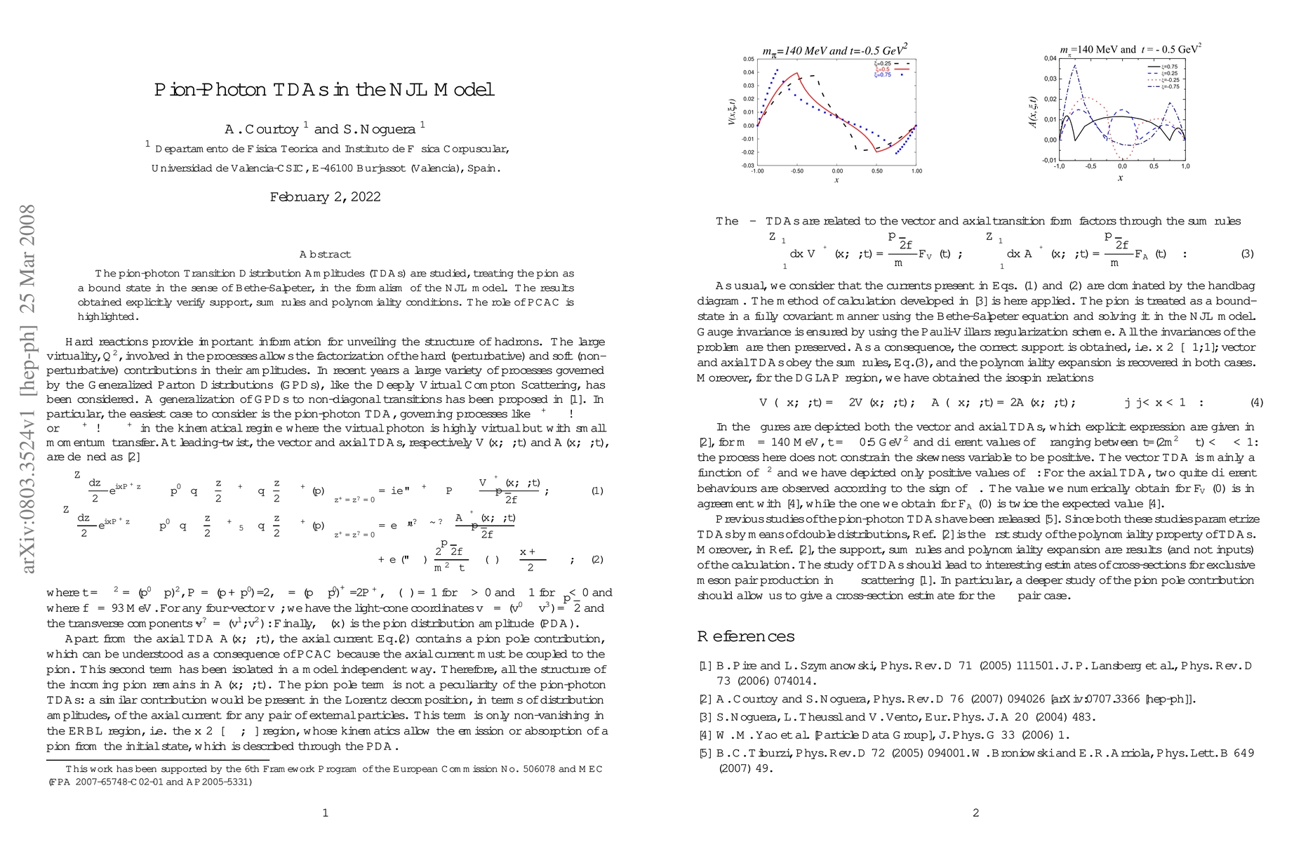 This paper investigates pion-photon Transition Distribution Amplitudes (TDAs) within the NJL model, treating pions as Bethe-Salpeter bound states. The study confirms support, sum rules, and polynomiality conditions, emphasizing the role of PCAC in these analyses.