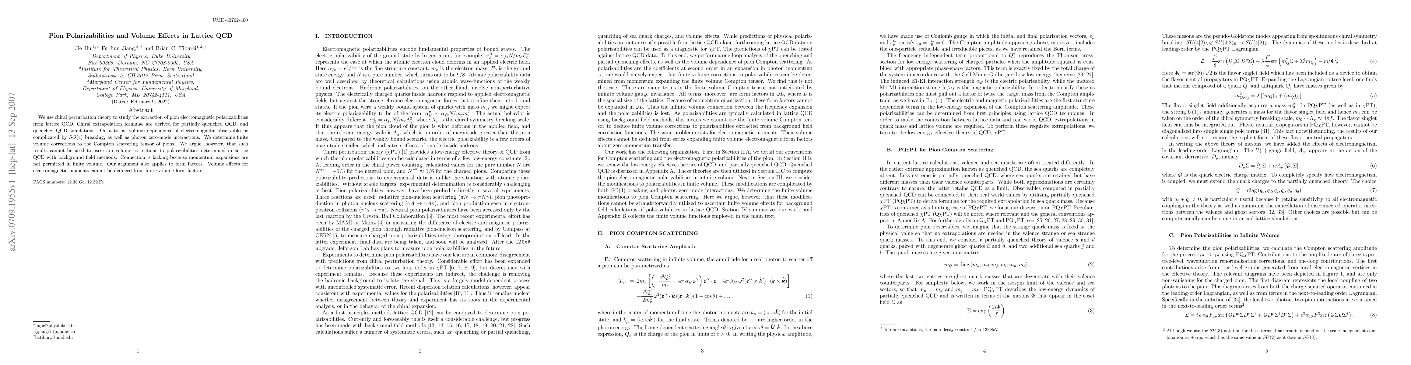 This paper investigates pion electromagnetic polarizabilities using lattice QCD and chiral perturbation theory, finding that finite volume corrections to the Compton scattering tensor cannot determine volume corrections to polarizabilities due to complications from SO(4) breaking and photon zero-mode interactions. It concludes that momentum expansions are not feasible in finite volume, thus precluding the deduction of volume effects from form factors.