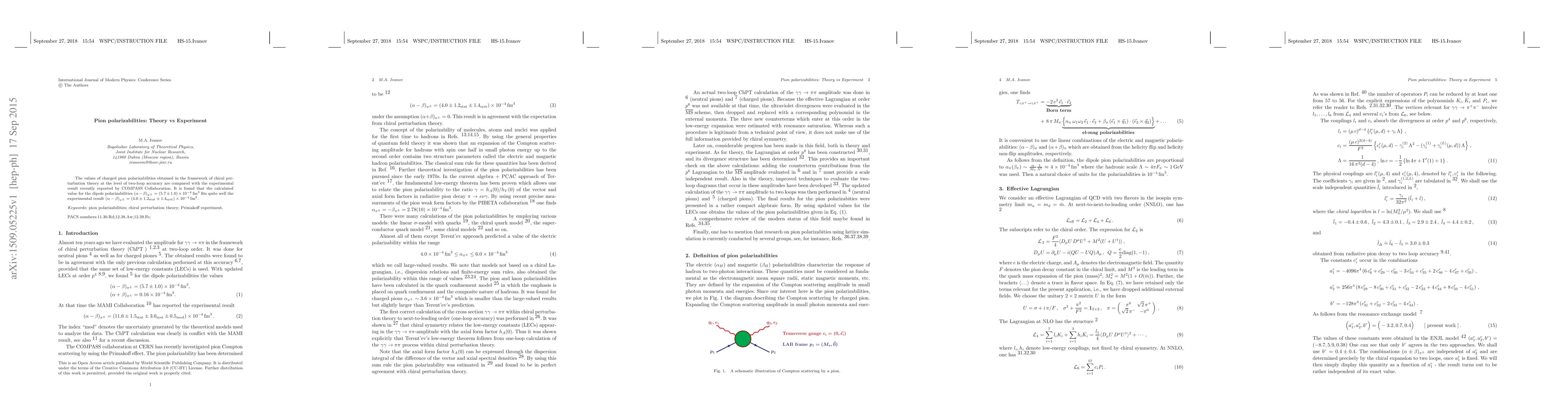 The values of charged pion polarizabilities obtained in the framework of chiral perturbation theory at the level of two-loop accuracy are compared with the experimental result recently reported by COMPASS Collaboration. It is found that the calculated value for the dipole polarizabilities $(\alpha-\beta)_{\pi^\pm}= (5.7\pm 1.0)\times 10^{-4}\,{\rm fm}^3$ fits quite well the experimental result $(\alpha-\beta)_{\pi^\pm} = (4.0 \pm 1.2_{\rm stat} \pm 1.4_{\rm syst}) \times 10^{-4}\,{\rm fm}^3$.