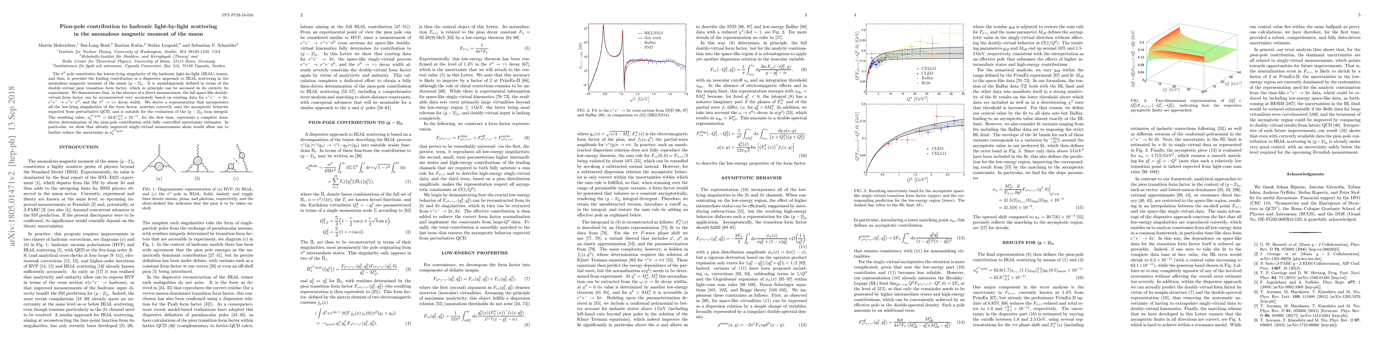 This paper investigates the pion-pole contribution to hadronic light-by-light scattering in the anomalous magnetic moment of the muon $(g-2)_\mu$, demonstrating that the $\pi^0$ pole provides the leading contribution. The authors reconstruct the full space-like doubly-virtual pion transition form factor using existing data and derive a representation suitable for evaluating the $(g-2)_\mu$ loop integral, resulting in a precise determination of $a_\mu^{\pi^0\text{-pole}}=62.6^{+3.0}_{-2.5}\times 10^{-11}$.