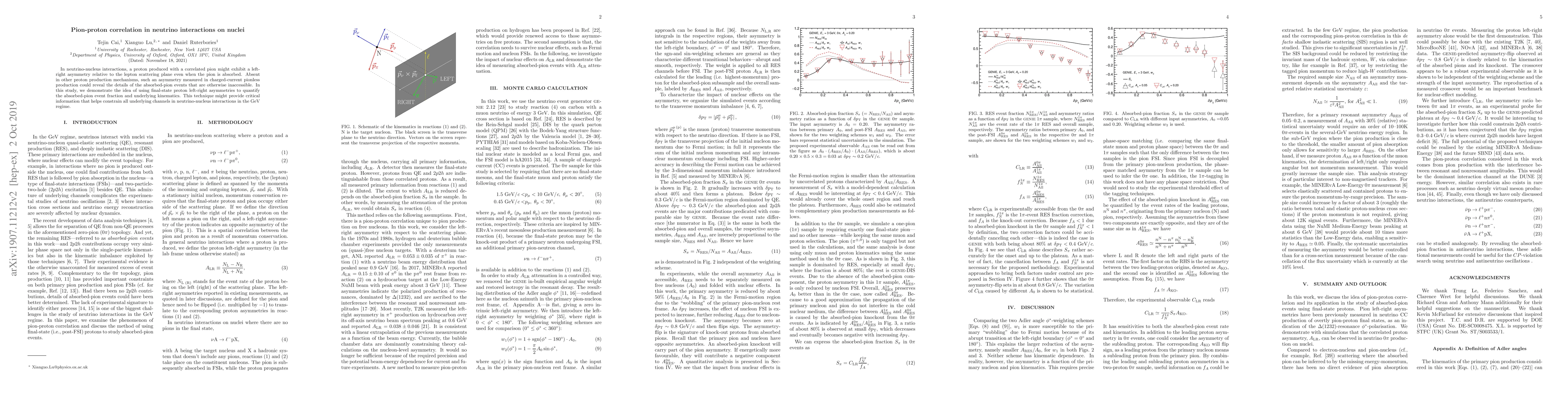 This study explores the use of left-right asymmetries in protons correlated with absorbed pions in neutrino-nucleus interactions to reveal details of absorbed-pion events. Such asymmetries could provide critical information to constrain all underlying channels in neutrino-nucleus interactions at the GeV energy regime.