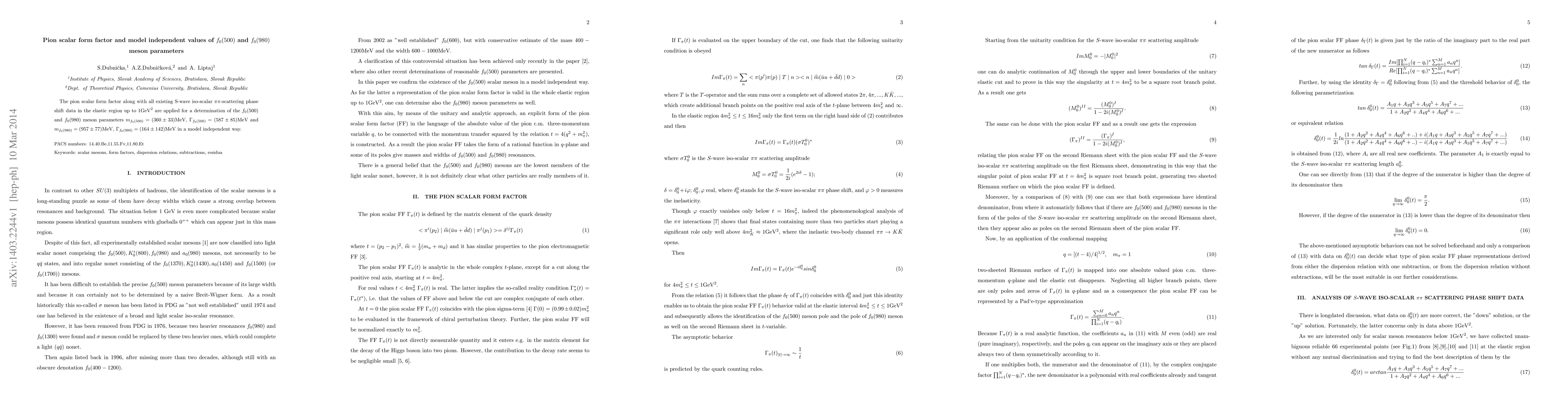Researchers used pion scalar form factor data to determine meson parameters of $f_0(500)$ and $f_0(980)$ with high accuracy, providing new model-independent values for their masses and widths.