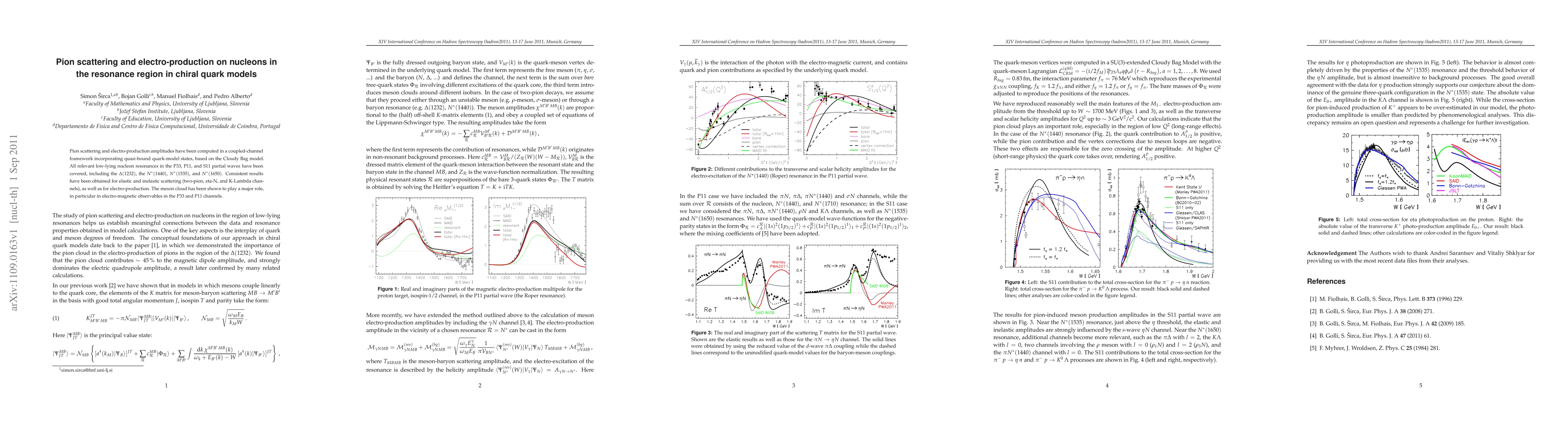 Pion scattering and electro-production amplitudes have been computed in a coupled-channel framework incorporating quasi-bound quark-model states, based on the Cloudy Bag model. All relevant low-lying nucleon resonances in the P33, P11, and S11 partial waves have been covered, including the Delta(1232), the N*(1440), N*(1535), and N*(1650). Consistent results have been obtained for elastic and inelastic scattering (two-pion, eta-N, and K-Lambda channels), as well as for electro-production. The meson cloud has been shown to play a major role, in particular in electro-magnetic observables in the P33 and P11 channels.