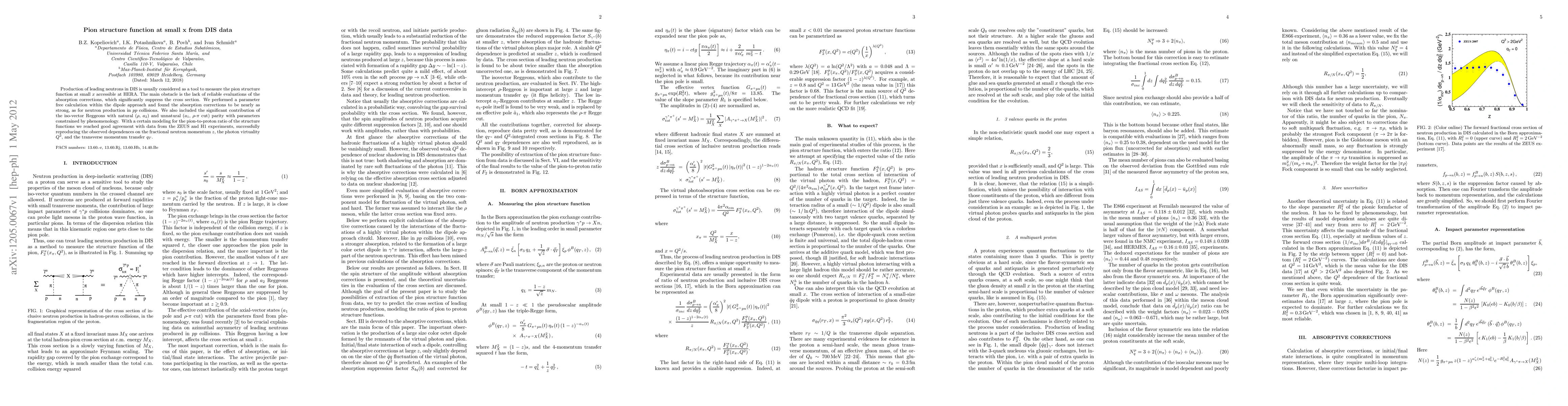 This paper measures the pion structure function at small x using Deep Inelastic Scattering (DIS) data, addressing the challenge of absorption corrections. The authors employ a dipole approach and include iso-vector Reggeon contributions, achieving good agreement with HERA experiment data on the observed dependencies of neutron production.