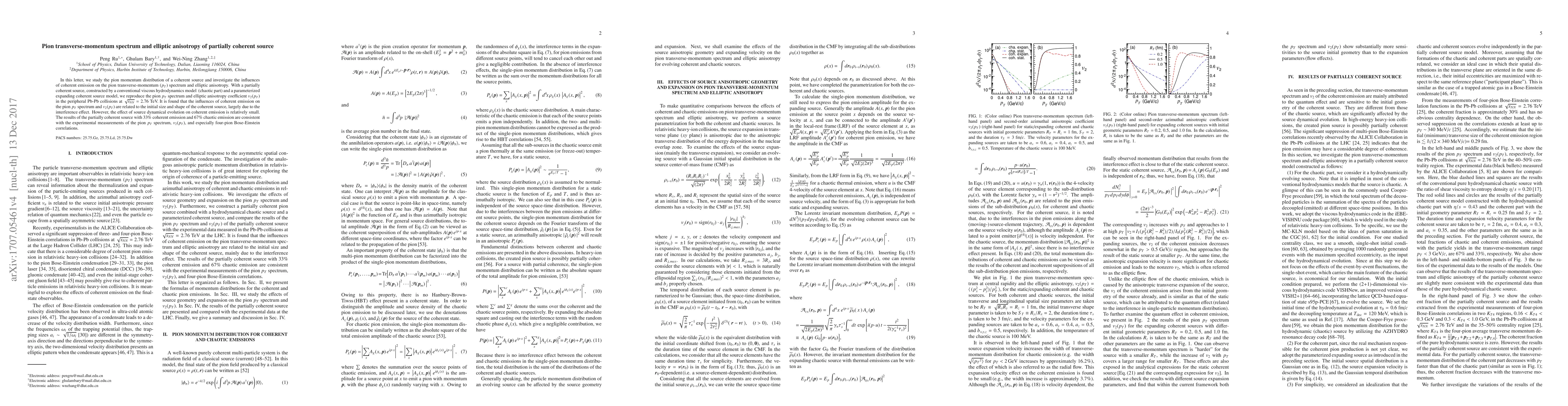 Researchers studied pion momentum distribution in heavy-ion collisions and found that partial coherence affects the pion transverse-momentum spectrum and elliptic anisotropy, with the effect related to source size and shape.