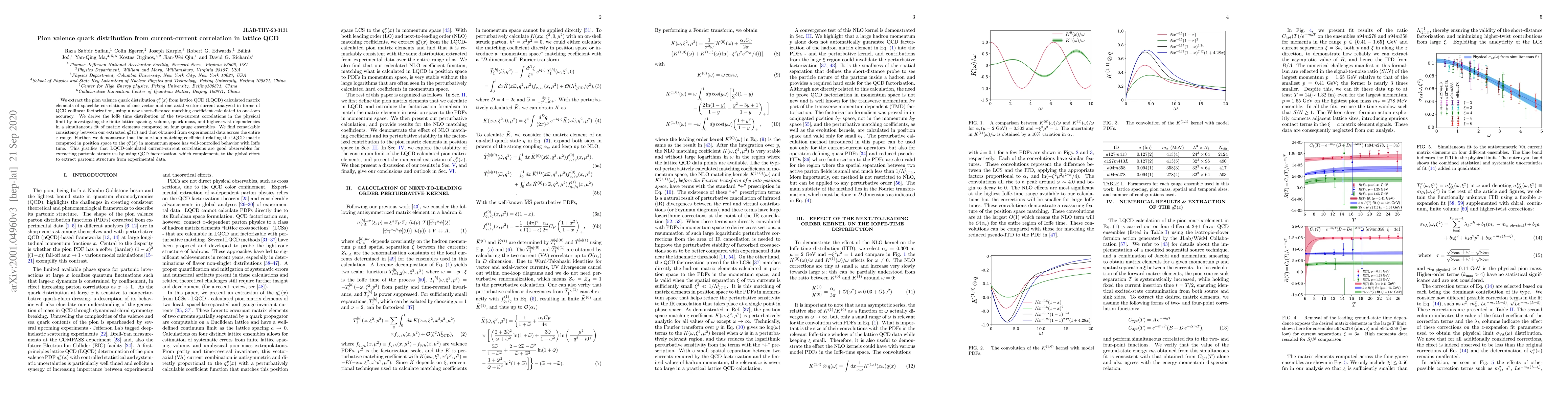 This paper extracts the pion valence quark distribution from lattice QCD using current-current correlations and finds strong consistency with experimental data. The study validates the use of lattice QCD for partonic structure extraction through QCD factorization.