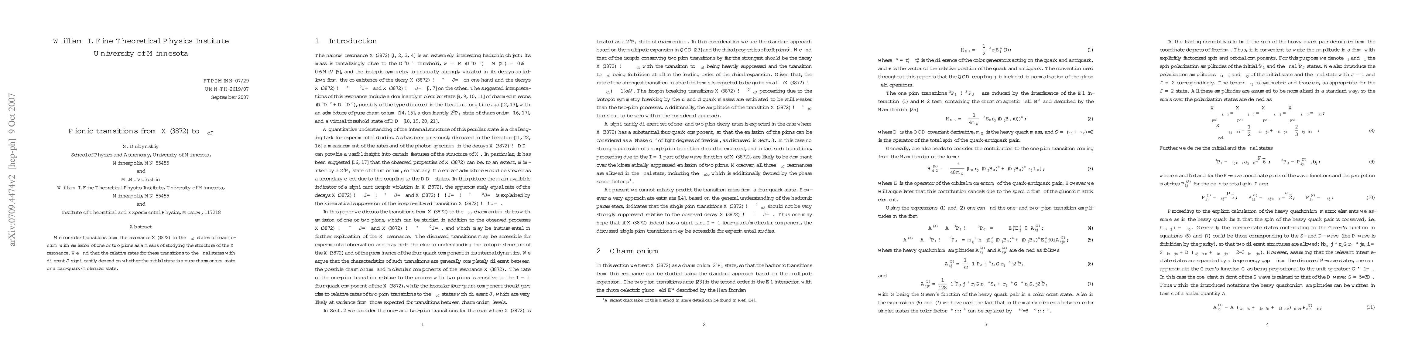 Summary: This study investigates pionic transitions from the X(3872) resonance to charmonium chi_{cJ} states, revealing that the transition rates depend on whether X(3872) is a pure charmonium or a four-quark/molecular state. The findings provide insights into the structure of X(3872).