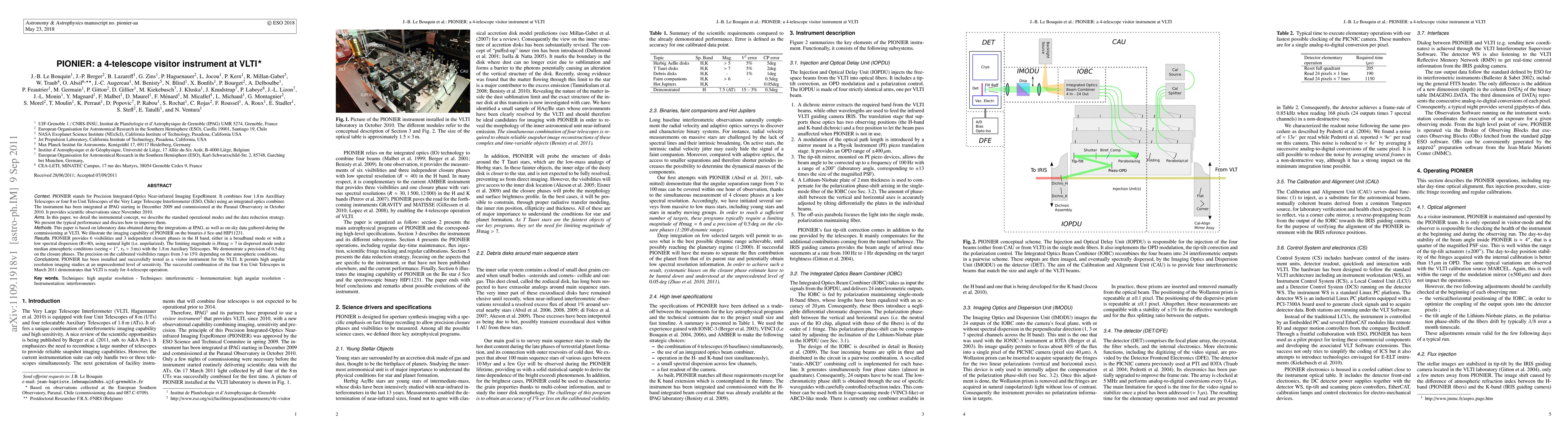 PIONIER, a 4-telescope visitor instrument at the VLTI, combines four auxiliary telescopes or unit telescopes for high angular resolution near-infrared imaging. It offers precise measurements of visibilities and closure phases, demonstrating capabilities in both broadband and low spectral dispersion modes.