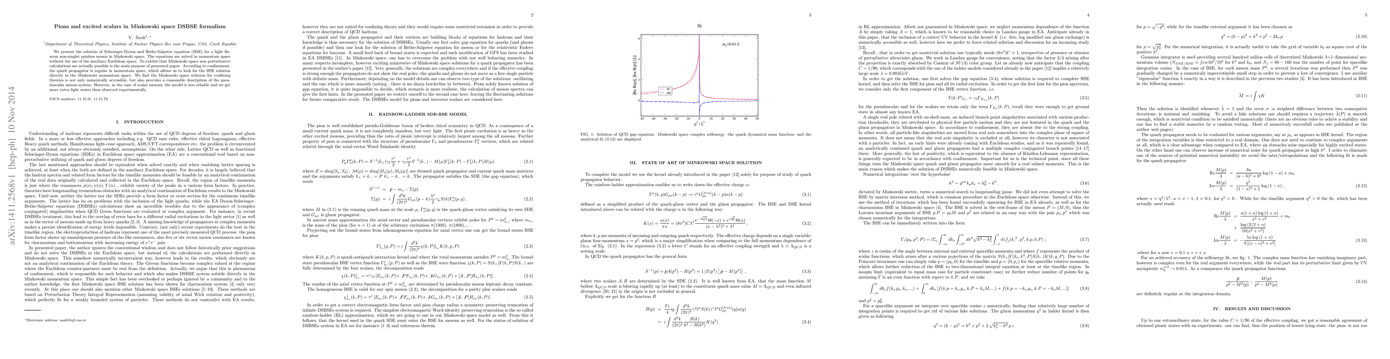The paper introduces a Minkowski space Dyson-Schwinger and Bethe-Salpeter equation (BSE) formalism for a light flavour non-singlet spinless meson, demonstrating non-perturbative calculations' feasibility in Minkowski space. While it successfully describes pseudoscalar mesons, the model shows less reliability for scalar mesons, yielding more experimental states than observed.
