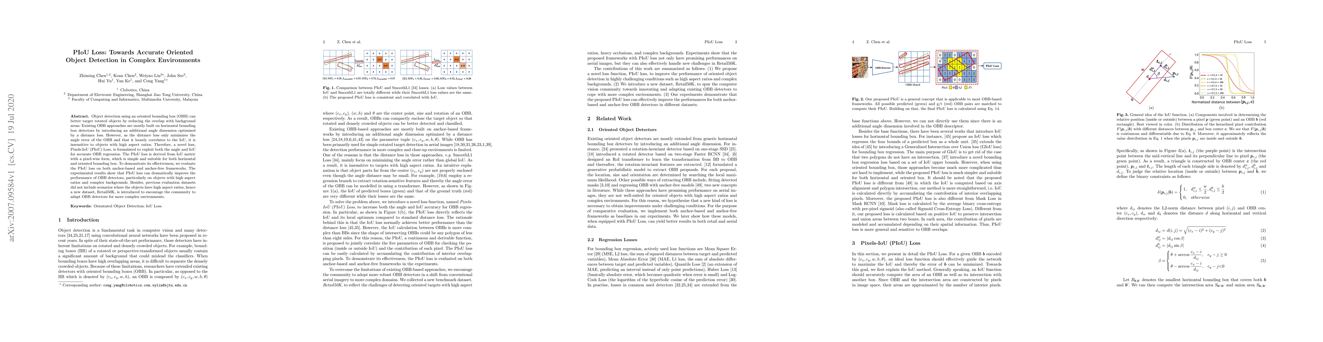 A new loss function called PIoU Loss improves oriented object detection accuracy in complex environments by combining angle and IoU metrics. It outperforms existing methods on objects with high aspect ratios and complex backgrounds.