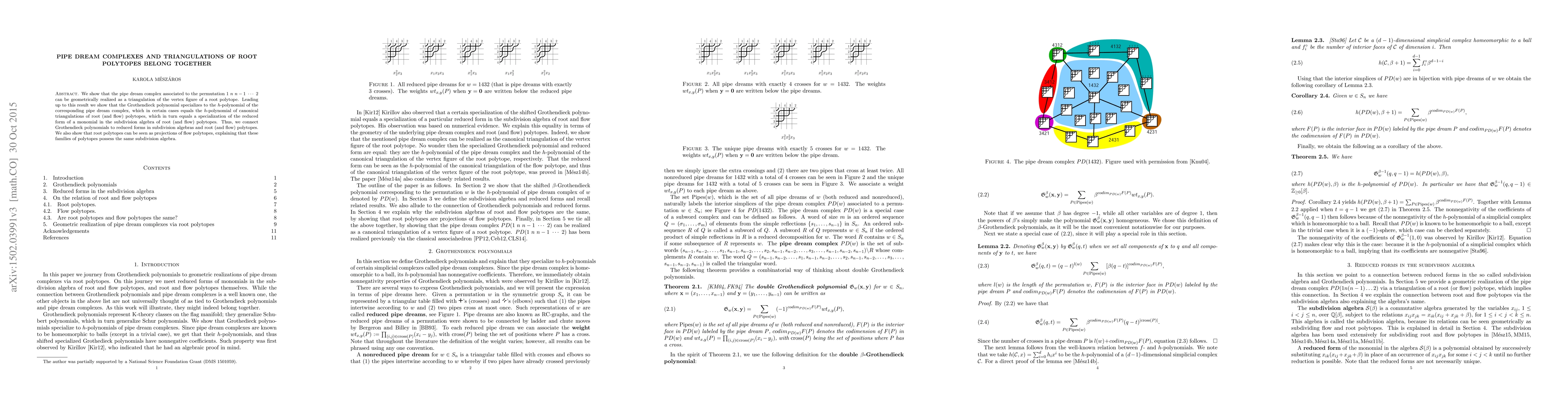 This paper establishes a geometric realization of the pipe dream complex for the permutation 1n(n-1)...2 as a triangulation of a root polytope's vertex figure. It connects Grothendieck polynomials to the h-polynomials of canonical triangulations of root polytopes and shows that root polytopes are projections of flow polytopes sharing the same subdivision algebra.