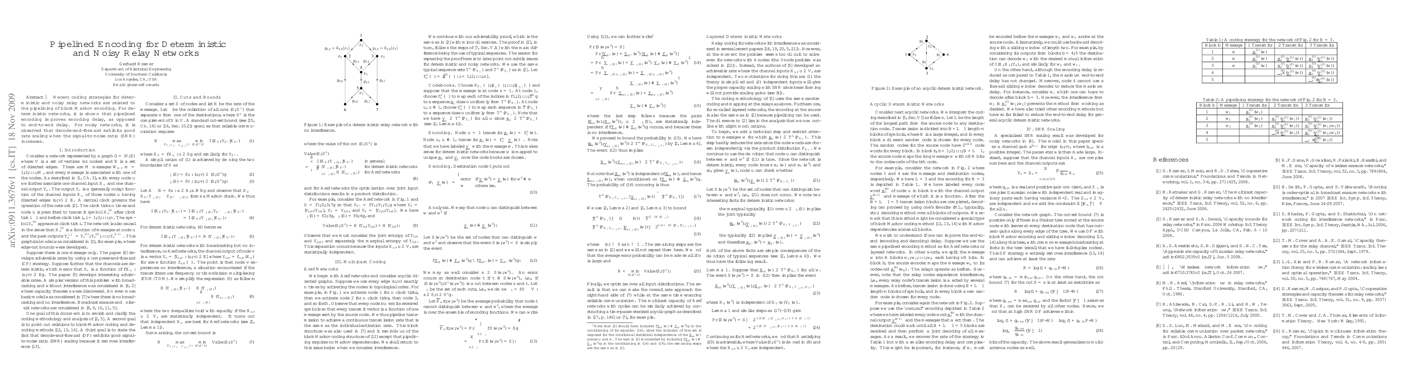 This paper explores pipelined encoding techniques for both deterministic and noisy relay networks, demonstrating that pipelined encoding reduces encoding delay in deterministic networks and that decode-and-forward shows favorable rate scaling with increasing signal-to-noise ratio in noisy networks.