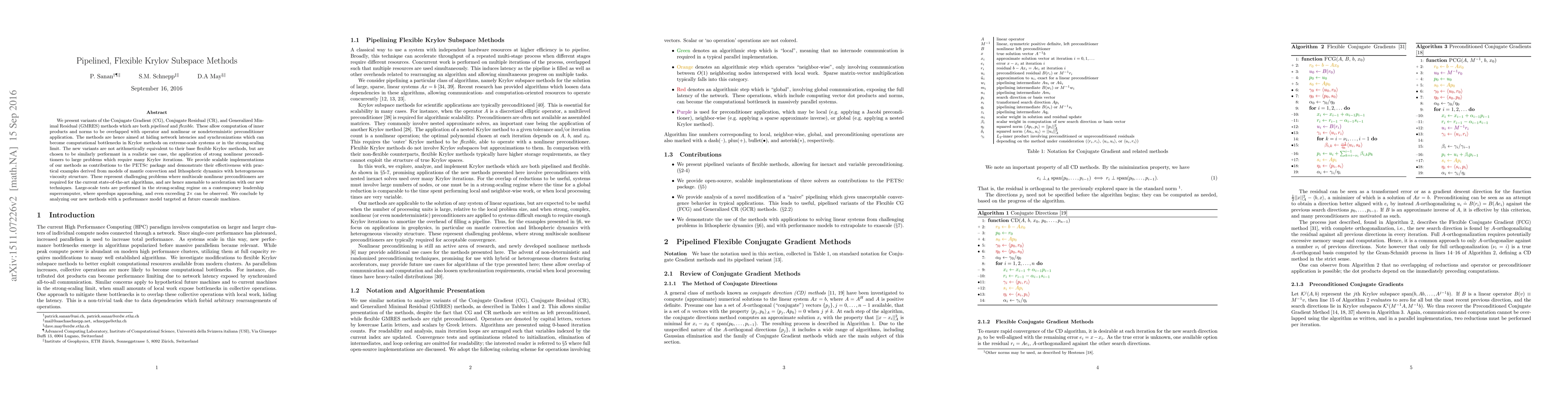 This paper introduces pipelined and flexible variants of CG, CR, and GMRES methods to mitigate network latencies and synchronization issues in extreme-scale systems. The scalable implementations show speedups of up to $2\times$ in strong-scaling tests on a supercomputer, demonstrating their effectiveness for large-scale, multiscale nonlinear preconditioning problems.
