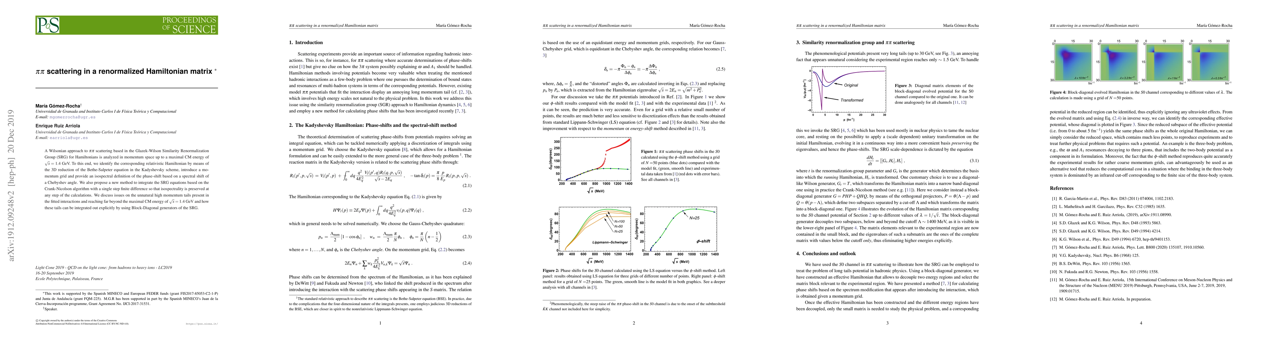 Researchers used the Glazek-Wilson Similarity Renormalization Group to analyze ππ scattering in momentum space up to 1.4 GeV, proposing a new method for integrating SRG equations and addressing issues with high-momentum tails.
