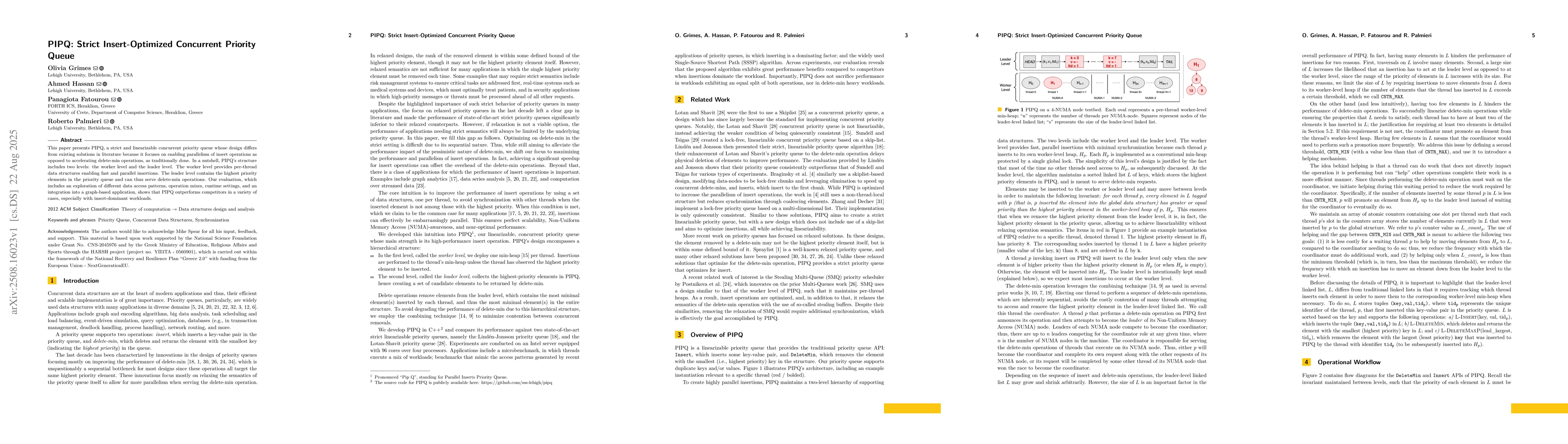 This paper presents PIPQ, a strict and linearizable concurrent priority queue whose design differs from existing solutions in literature because it focuses on enabling parallelism of insert operations as opposed to accelerating delete-min operations, as traditionally done. In a nutshell, PIPQ's structure includes two levels: the worker level and the leader level. The worker level provides per-thread data structures enabling fast and parallel insertions. The leader level contains the highest priority elements in the priority queue and can thus serve delete-min operations. Our evaluation, which includes an exploration of different data access patterns, operation mixes, runtime settings, and an integration into a graph-based application, shows that PIPQ outperforms competitors in a variety of cases, especially with insert-dominant workloads.