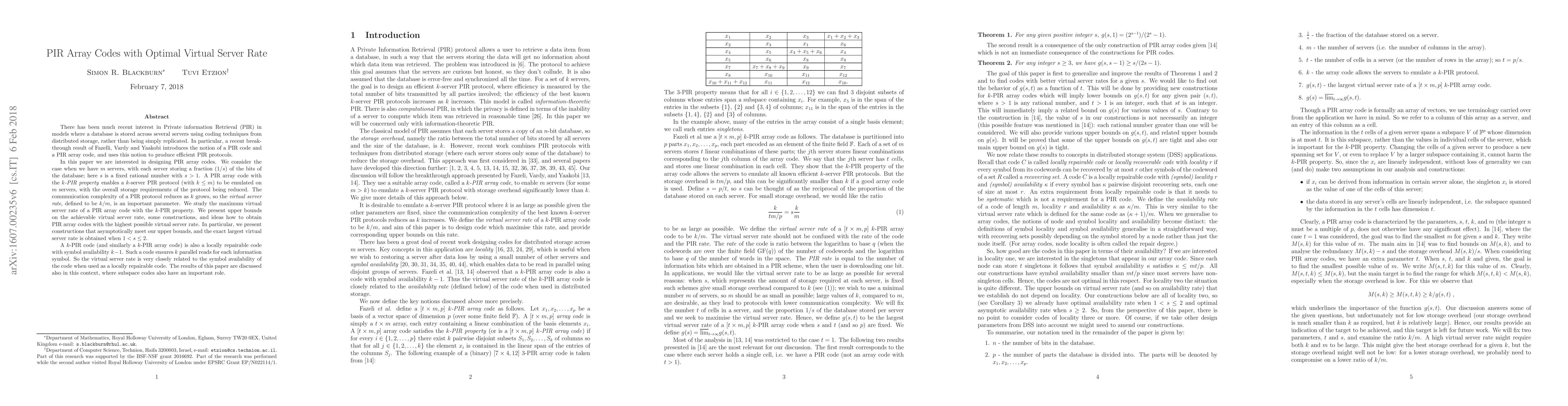 There has been much recent interest in Private information Retrieval (PIR) in models where a database is stored across several servers using coding techniques from distributed storage, rather than being simply replicated. In particular, a recent breakthrough result of Fazelli, Vardy and Yaakobi introduces the notion of a PIR code and a PIR array code, and uses this notion to produce efficient PIR protocols. In this paper we are interested in designing PIR array codes. We consider the case when we have $m$ servers, with each server storing a fraction $(1/s)$ of the bits of the database; here $s$ is a fixed rational number with $s > 1$. A PIR array code with the $k$-PIR property enables a $k$-server PIR protocol (with $k\leq m$) to be emulated on $m$ servers, with the overall storage requirements of the protocol being reduced. The communication complexity of a PIR protocol reduces as $k$ grows, so the virtual server rate, defined to be $k/m$, is an important parameter. We study the maximum virtual server rate of a PIR array code with the $k$-PIR property. We present upper bounds on the achievable virtual server rate, some constructions, and ideas how to obtain PIR array codes with the highest possible virtual server rate. In particular, we present constructions that asymptotically meet our upper bounds, and the exact largest virtual server rate is obtained when $1 < s \leq 2$. A $k$-PIR code (and similarly a $k$-PIR array code) is also a locally repairable code with symbol availability $k-1$. Such a code ensures $k$ parallel reads for each information symbol. So the virtual server rate is very closely related to the symbol availability of the code when used as a locally repairable code. The results of this paper are discussed also in this context, where subspace codes also have an important role.