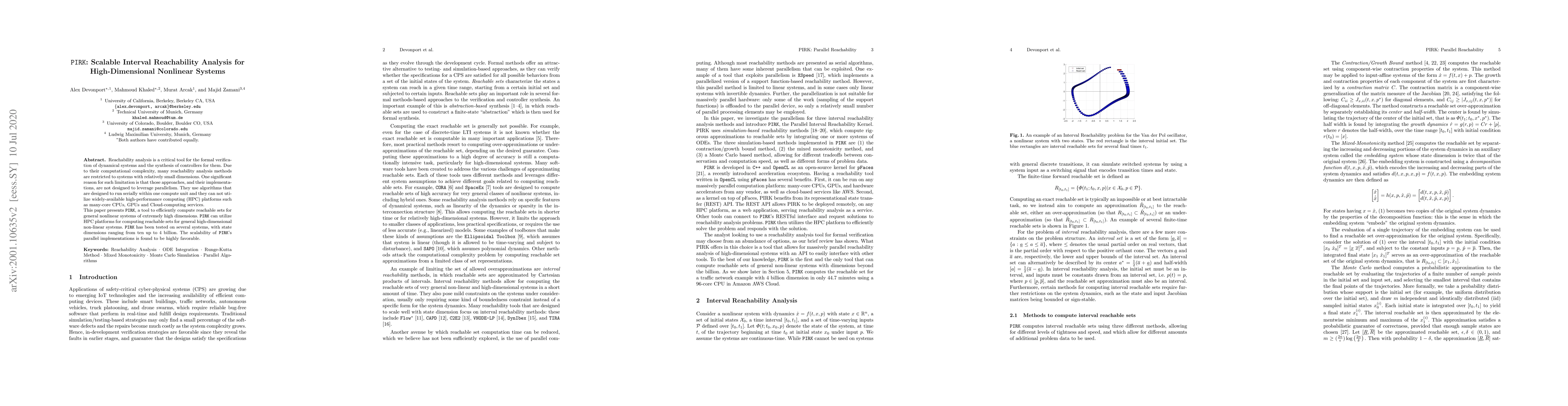 This paper introduces PIRK, a scalable tool for interval reachability analysis of high-dimensional nonlinear systems, leveraging parallel computing to overcome the limitations of serial methods. PIRK's parallel implementations demonstrate favorable scalability, enabling analysis of systems with state dimensions up to 4 billion.