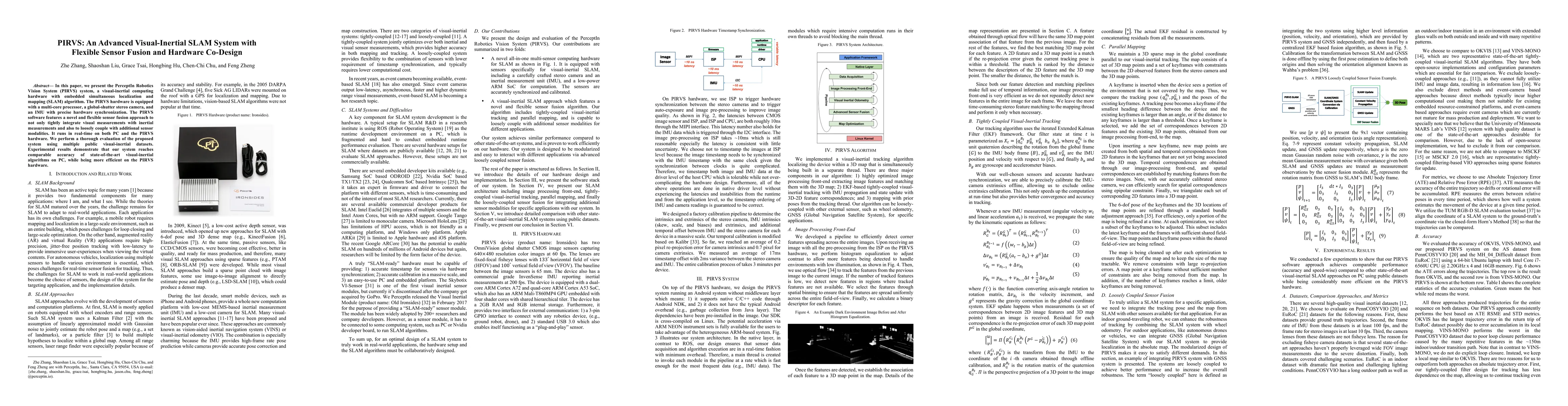 The PIRVS system integrates advanced visual-inertial SLAM with flexible sensor fusion and hardware co-design, achieving comparable accuracy to state-of-the-art algorithms while demonstrating greater efficiency on its dedicated hardware. The system's novel fusion approach and real-time performance are validated across multiple datasets.