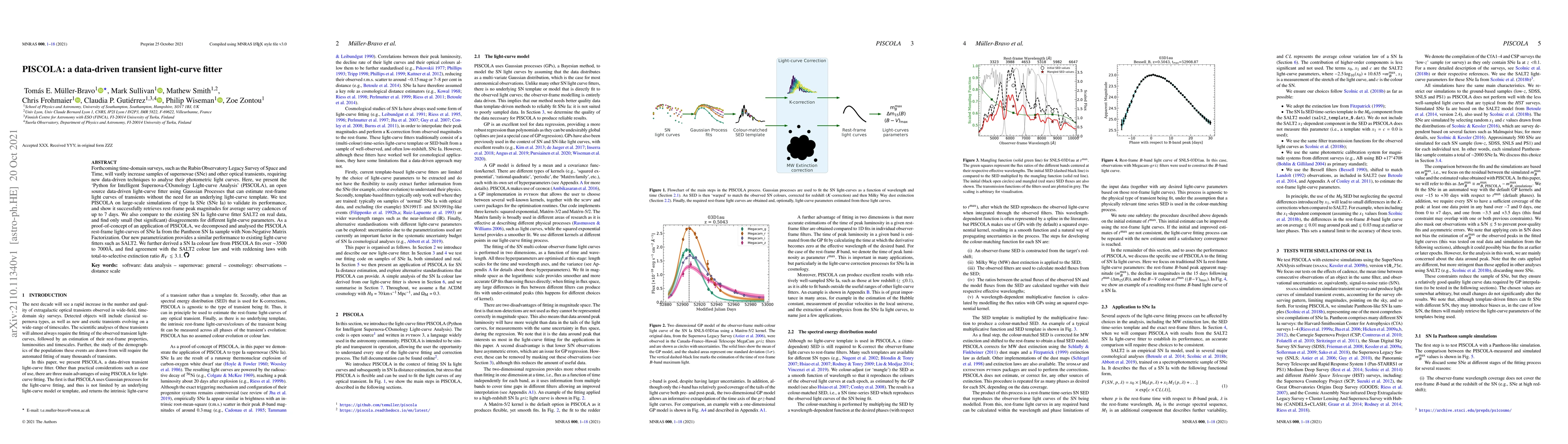 PISCOLA is an open-source light-curve fitter using Gaussian Processes to analyze transient light curves without predefined templates, validated on type Ia supernovae simulations and real data. It shows comparable performance to existing fitters like SALT2 and provides a new color law for SNe Ia.