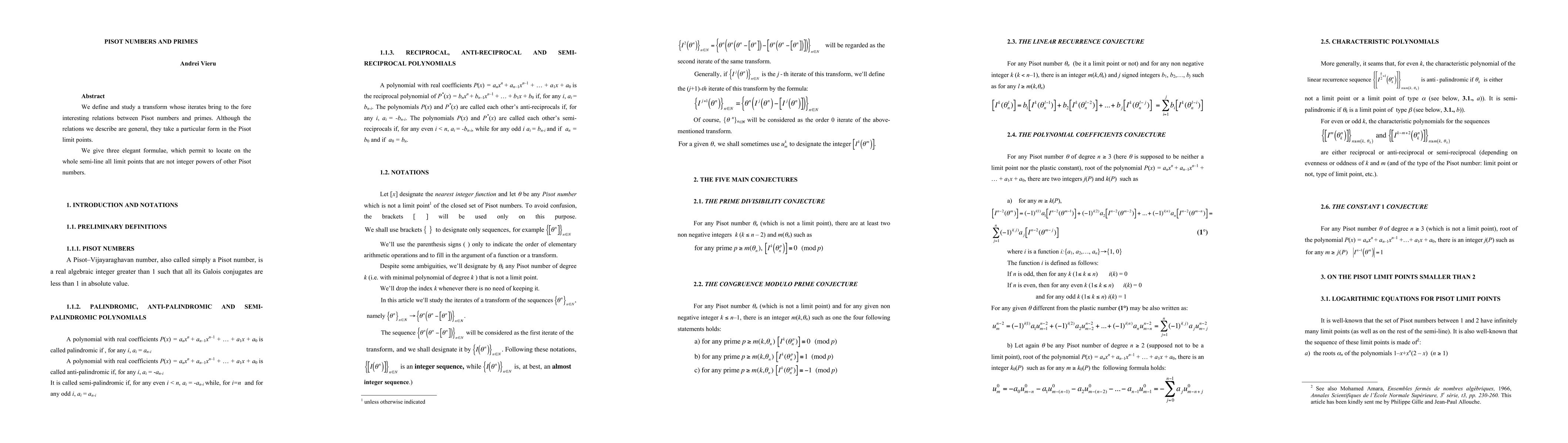 This paper introduces a transform revealing connections between Pisot numbers and primes, particularly focusing on the special relations in Pisot limit points. It provides three elegant formulas to identify all non-integer power limit points of Pisot numbers on the semi-line.