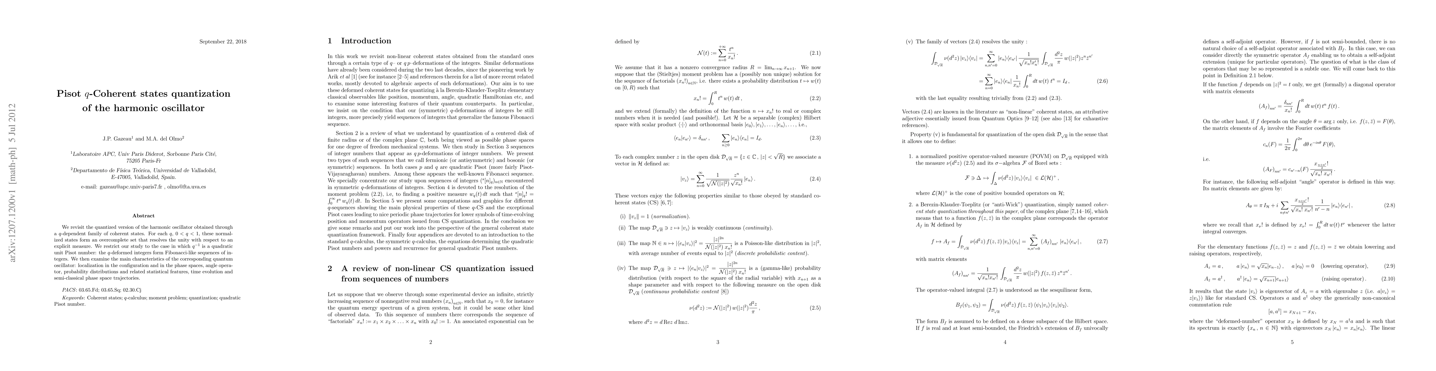 This paper quantizes the harmonic oscillator using a family of q-dependent coherent states, focusing on the case where 1/q is a Pisot number, leading to Fibonacci-like integer sequences. It explores the quantum oscillator's localization, angle operator, probability distributions, time evolution, and semi-classical phase space trajectories.