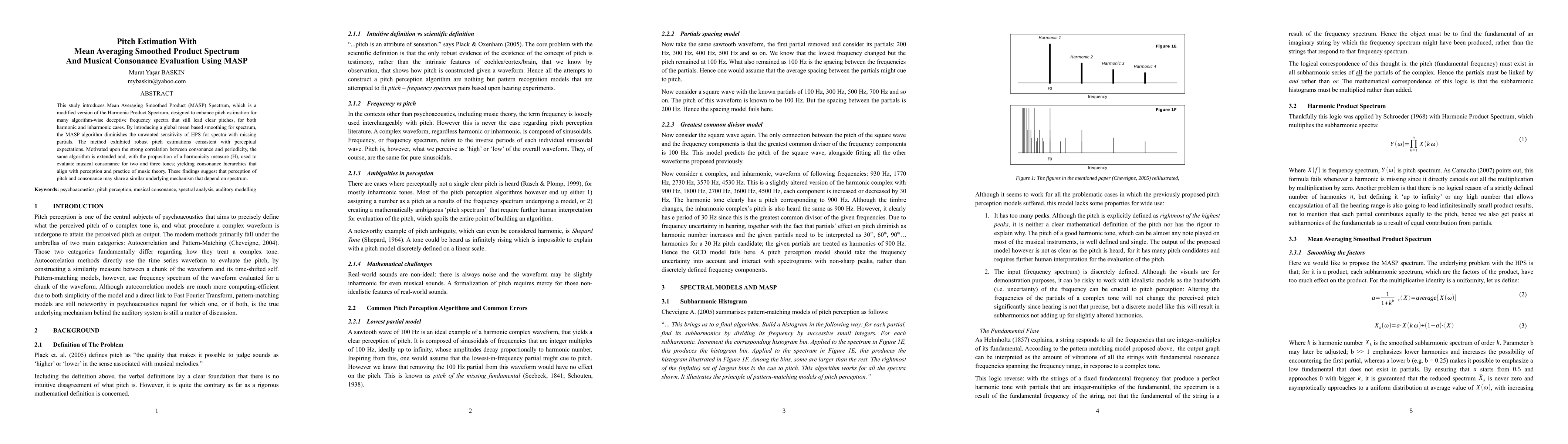 The study introduces the Mean Averaging Smoothed Product (MASP) Spectrum, a modified Harmonic Product Spectrum (HPS) designed to enhance pitch estimation for both harmonic and inharmonic cases. It also extends the algorithm to evaluate musical consonance using a harmonicity measure (H) based on periodicity and spectrum analysis.