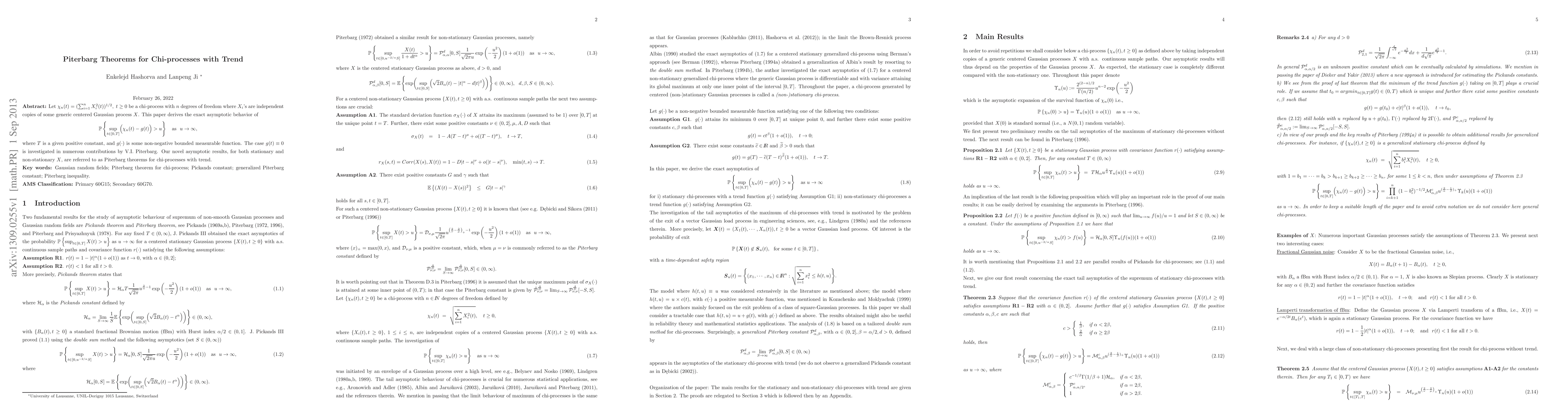 This paper derives the exact asymptotic behavior of the probability that a chi-process with trend exceeds a large threshold as the threshold tends to infinity. The results extend Piterbarg's theorems to non-stationary Gaussian processes, providing new insights into chi-processes with trends.