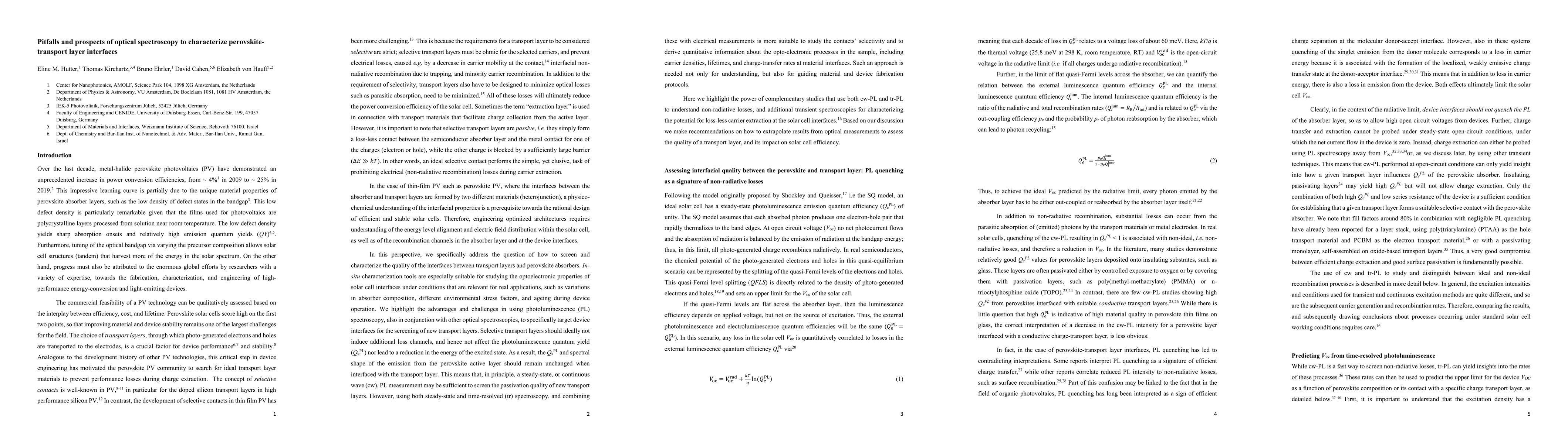This paper critically examines the use of optical spectroscopy to characterize perovskite-transport layer interfaces in photovoltaics, emphasizing the benefits of combining continuous wave and time-resolved photoluminescence studies to understand non-radiative losses and carrier extraction efficiency. Recommendations are provided on how to use these techniques to assess transport layer quality and its impact on solar cell performance.