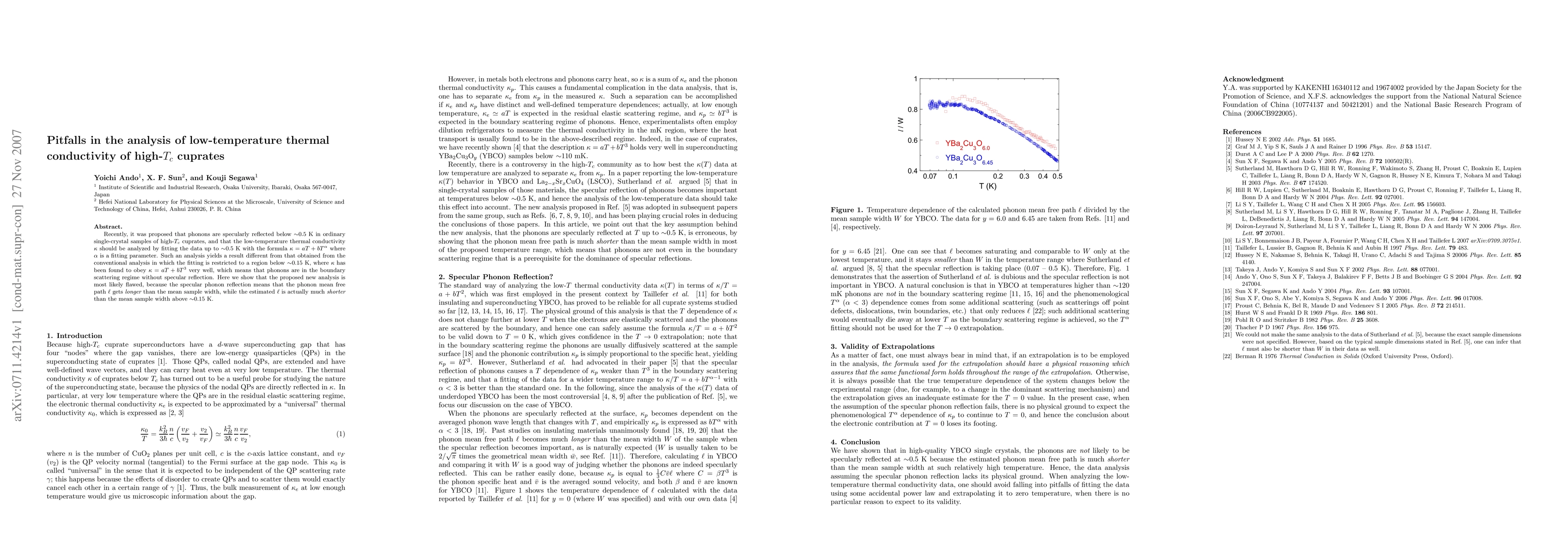 This paper critiques the proposed method for analyzing low-temperature thermal conductivity in high-Tc cuprates, arguing that the new method is flawed due to the inconsistency between the estimated phonon mean free path and the sample width above 0.15 K. The conventional analysis below 0.15 K is deemed more reliable.