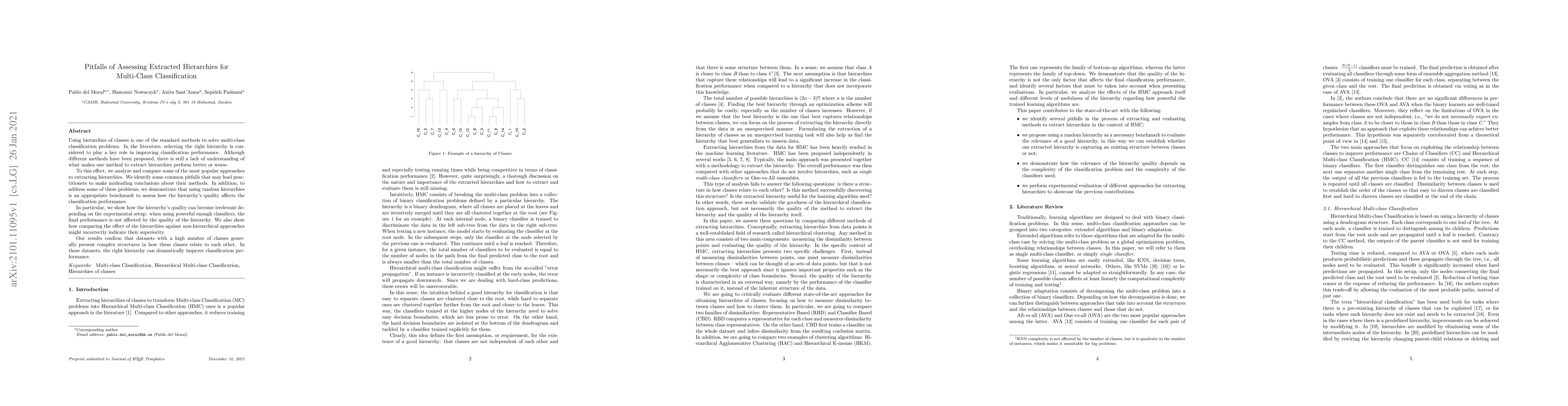 This paper examines the challenges in evaluating extracted hierarchies for multi-class classification, highlighting common pitfalls that can mislead practitioners. It demonstrates that powerful classifiers can render hierarchy quality irrelevant, and suggests using random hierarchies as a benchmark for fair assessment.