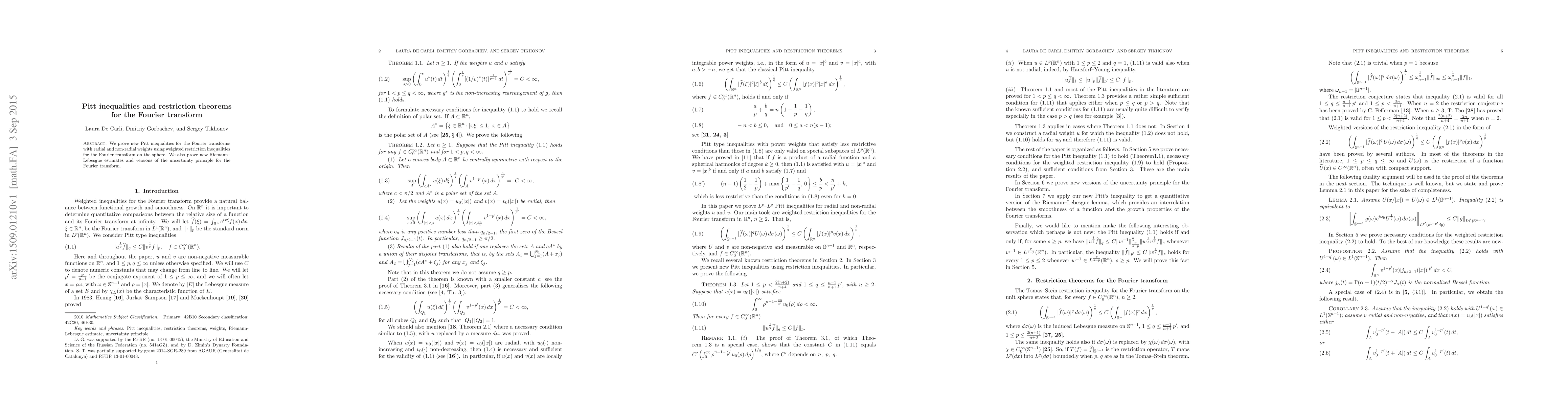 Summary: This paper establishes novel Pitt inequalities for Fourier transforms with both radial and non-radial weights, leveraging weighted restriction inequalities on the sphere. Additionally, it presents new Riemann-Lebesgue estimates and uncertainty principle versions for the Fourier transform.