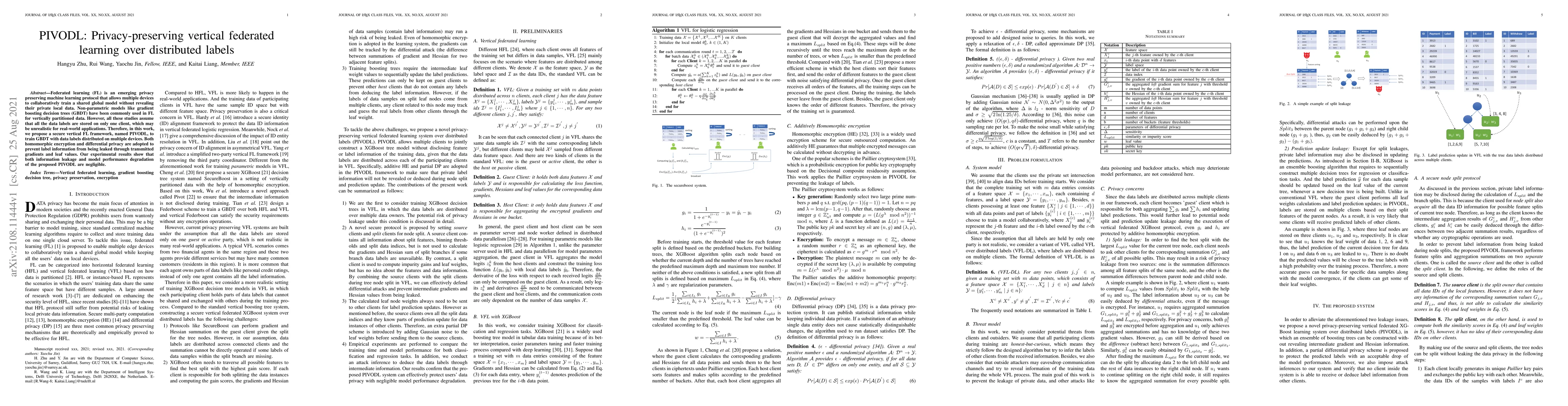 PIVODL is a privacy-preserving vertical federated learning framework designed to train gradient boosting decision trees with data labels distributed across multiple devices. It employs homomorphic encryption and differential privacy to safeguard label information, achieving negligible information leakage and minimal model performance degradation.