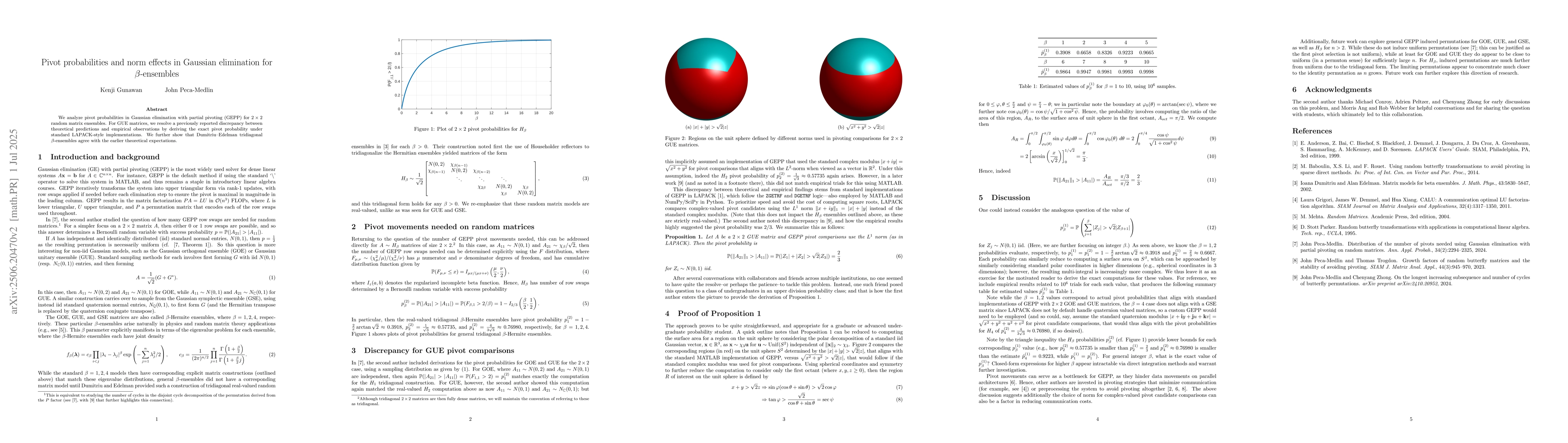 We analyze pivot probabilities in Gaussian elimination with partial pivoting (GEPP) for $2 \times 2$ random matrix ensembles. For GUE matrices, we resolve a previously reported discrepancy between theoretical predictions and empirical observations by deriving the exact pivot probability under standard LAPACK-style implementations. We further show that Dumitriu-Edelman tridiagonal $\beta$-ensembles agree with the earlier theoretical expectations. Finally, we propose an open question on pivot behavior under alternative norm choices, supported by empirical evidence.