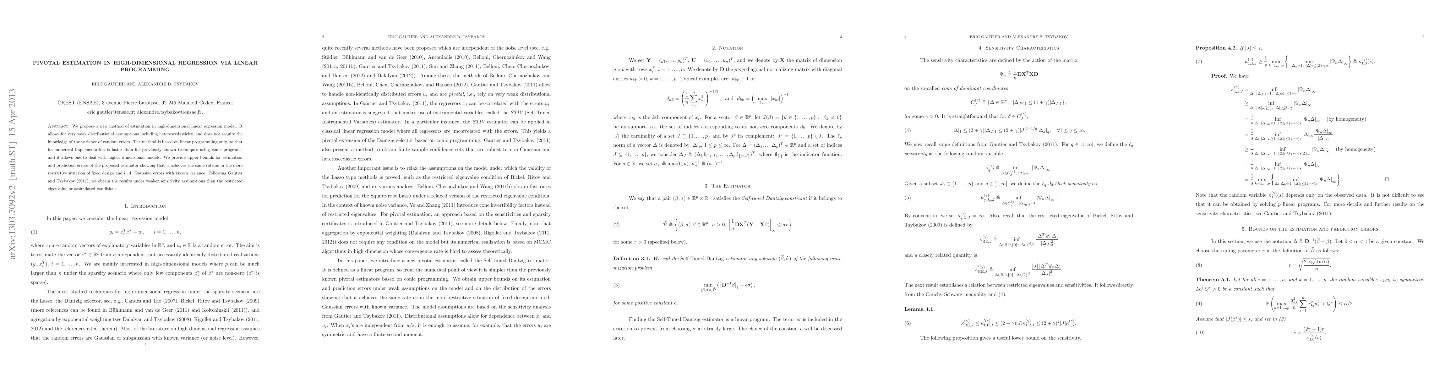 We propose a new method of estimation in high-dimensional linear regression model. It allows for very weak distributional assumptions including heteroscedasticity, and does not require the knowledge of the variance of random errors. The method is based on linear programming only, so that its numerical implementation is faster than for previously known techniques using conic programs, and it allows one to deal with higher dimensional models. We provide upper bounds for estimation and prediction errors of the proposed estimator showing that it achieves the same rate as in the more restrictive situation of fixed design and i.i.d. Gaussian errors with known variance. Following Gautier and Tsybakov (2011), we obtain the results under weaker sensitivity assumptions than the restricted eigenvalue or assimilated conditions.