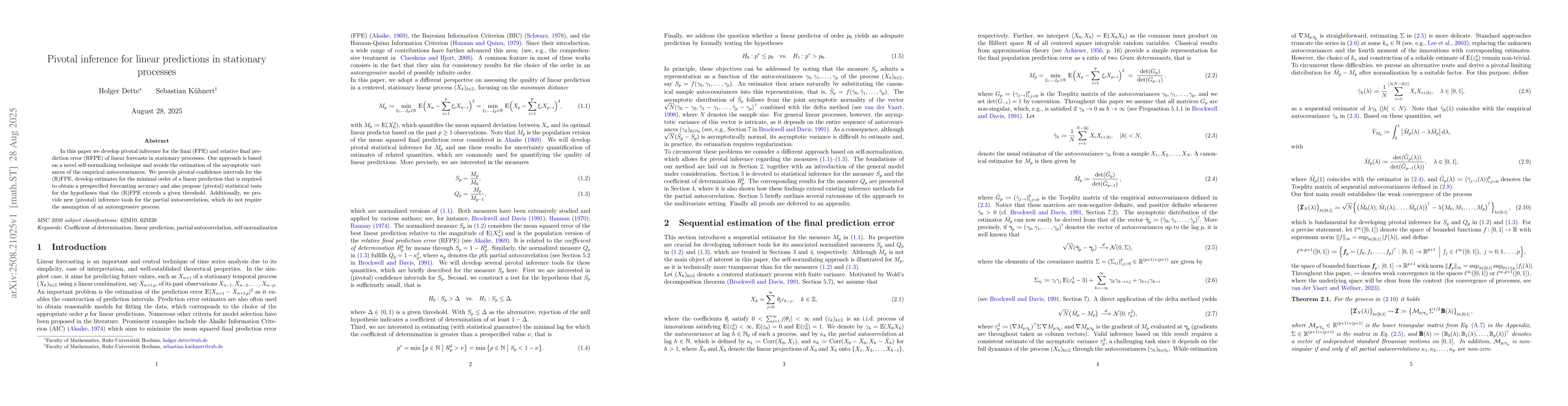 In this paper we develop pivotal inference for the final (FPE) and relative final prediction error (RFPE) of linear forecasts in stationary processes. Our approach is based on a novel self-normalizing technique and avoids the estimation of the asymptotic variances of the empirical autocovariances. We provide pivotal confidence intervals for the (R)FPE, develop estimates for the minimal order of a linear prediction that is required to obtain a prespecified forecasting accuracy and also propose (pivotal) statistical tests for the hypotheses that the (R)FPE exceeds a given threshold. Additionally, we provide new (pivotal) inference tools for the partial autocorrelation, which do not require the assumption of an autoregressive process.