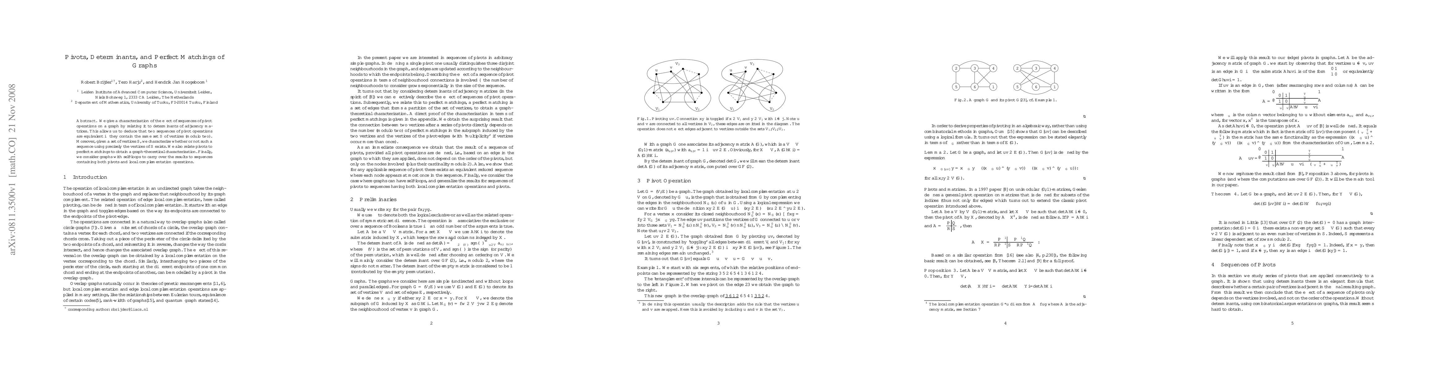 This paper characterizes the effect of pivot operations on graphs through determinants of adjacency matrices, showing equivalence of pivot sequences if they share the same vertex set modulo two. It also links pivots to perfect matchings and extends results to graphs with self-loops, incorporating local complementation operations.
