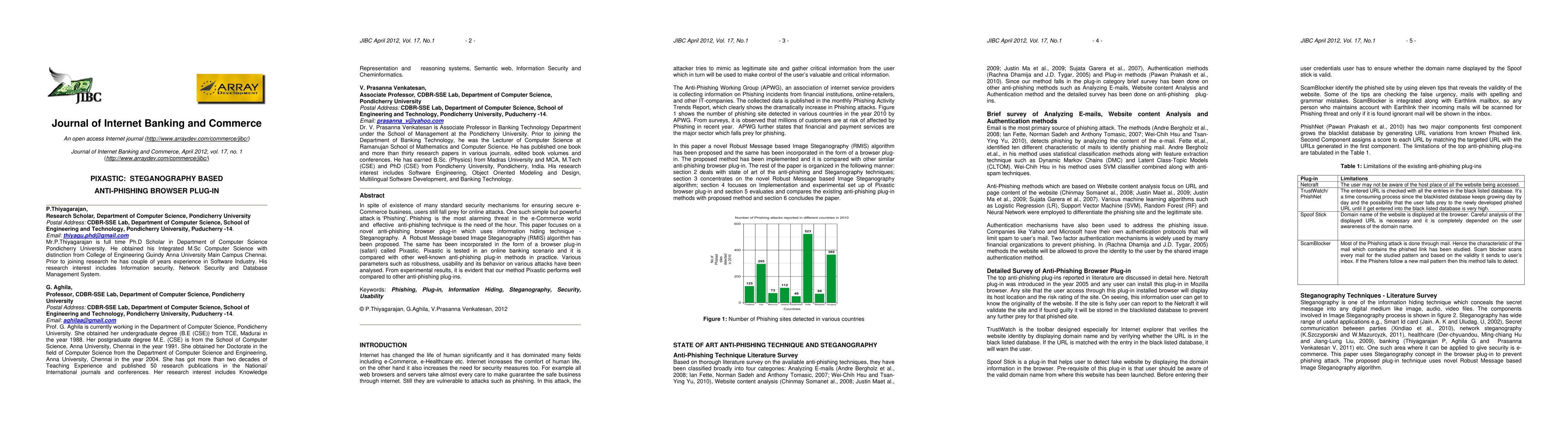 The paper presents a novel anti-phishing browser plug-in, Pixastic, which incorporates a Robust Message based Image Steganography (RMIS) algorithm for embedding and extracting secret messages within cover images.